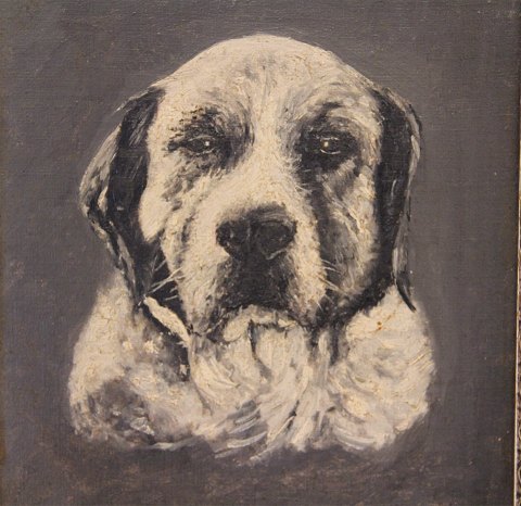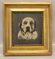 Hundemaleri Ca 34 x 31 cm inklusiv guldramme
