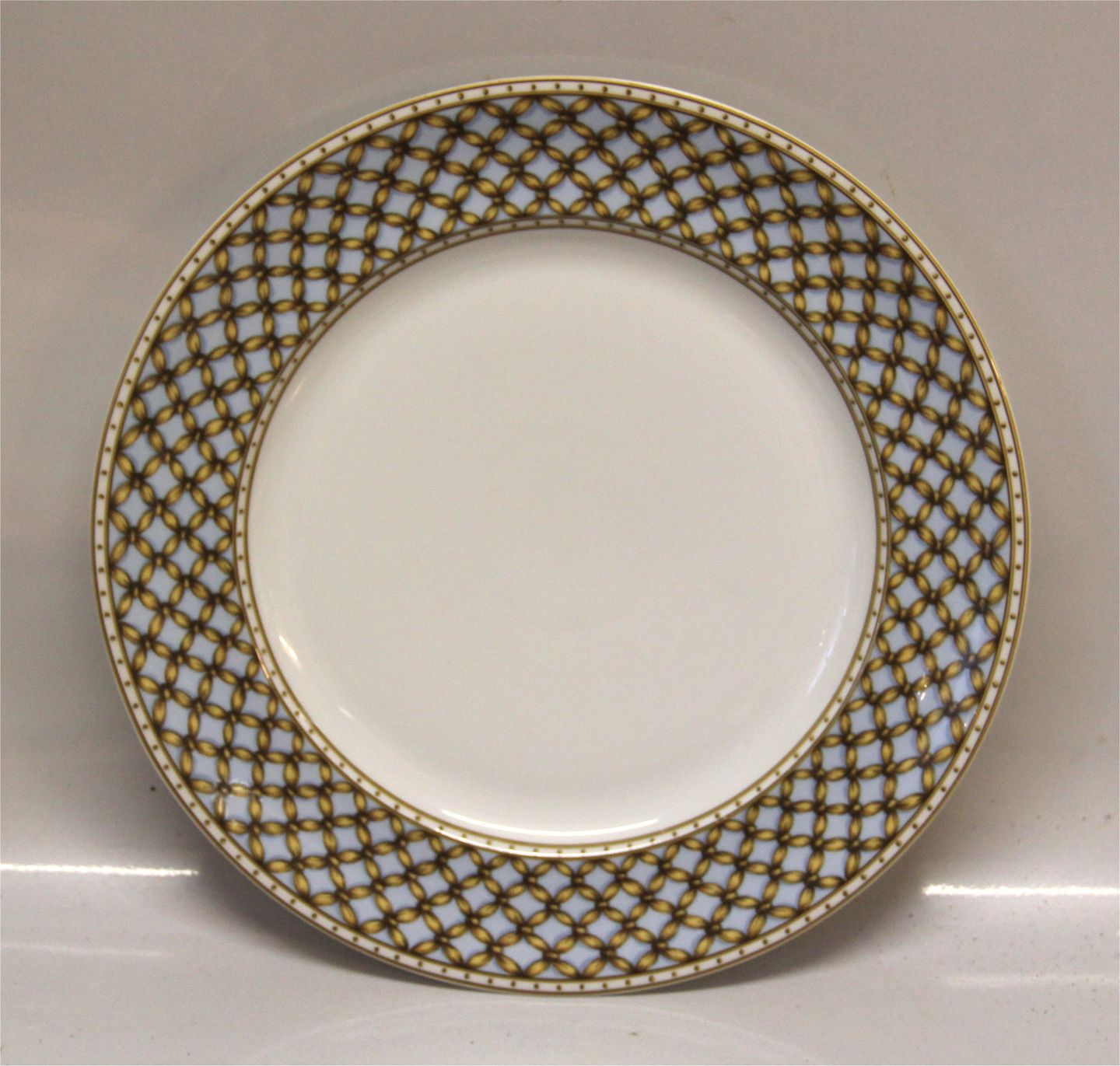 631 Flad tallerken 31 cm Lyseblå , Flet Kgl. Liselund Moderne stel i lys og mørk blå med guld. Design Diana Holstein 2001 for Royal Copenhagen