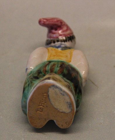 : L. Hjorth miniature Mand med rød tophue 7.7 cm Bornholmsk Keramik