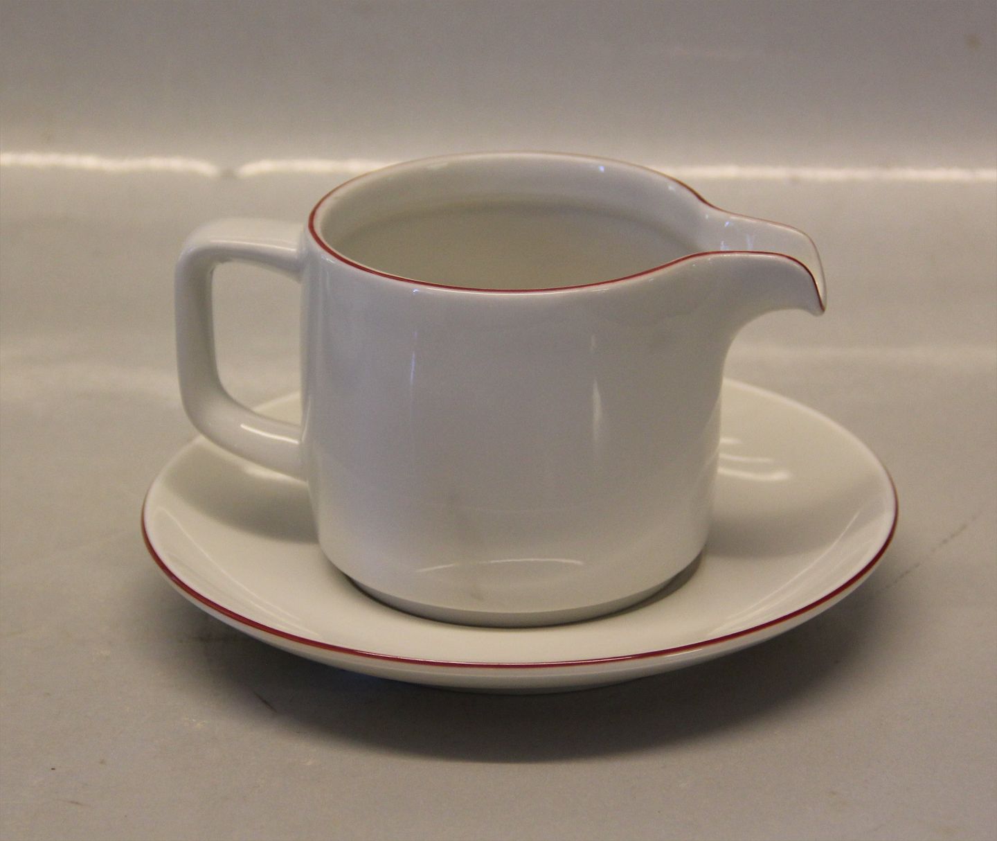 6266 Flødekande med underfad 14.8 cm 6237 Rødtop Kgl. Hvidt Porcelæn med rød kant Design Grethe Meyer fra Royal Copenhagen (Weisstopf)