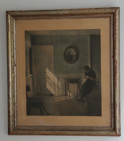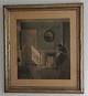 Opus 40. Den gamle Stue. Solstrejf på pige med sytøj. Farvemezzotinte (samme Motiv som opus 39) Oplag, trykt i Farver, 150 nummererede Ekspl. Lysmål 48 x 43 cm Gammel ramme 70 x 64 cm #64 af 150