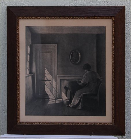 Opus 5. Solskin paa en Dør. Lysmål 36 x 32,5 cm Peter Ilsted Sort Mezzotinte i gammel træramme ca 52 x 43 cm