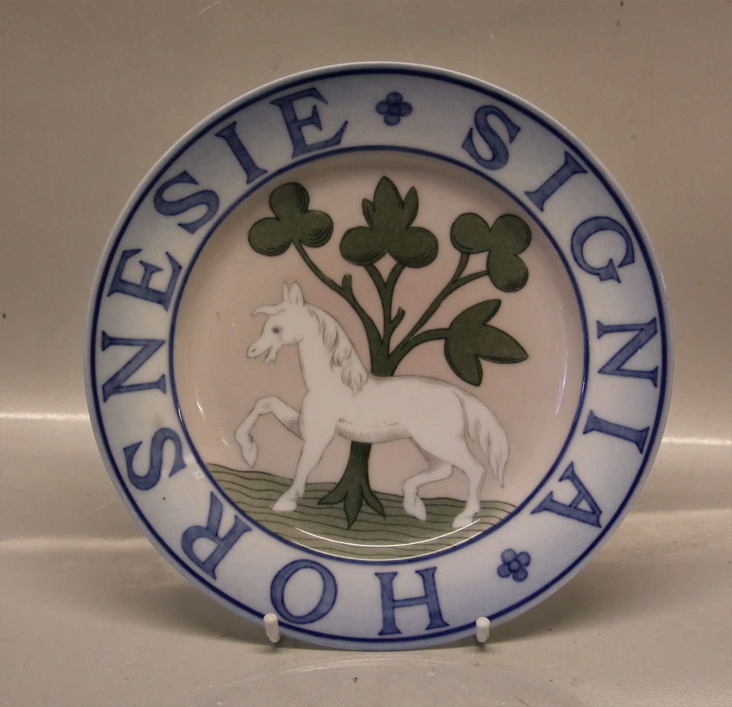 Byplatte 24 cm Hest og plante Signia Horsnesie By-platte med Horsens byvåben fra en serie skabt af Effie Hergermann-Lindencrone. 23,8 cm