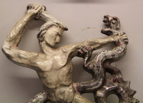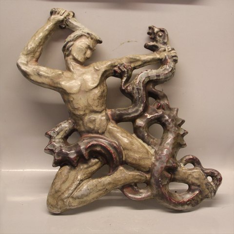 Michael Andersen & Søn Bornholm, 4840-2 Sct George og dragen releif 46 x 39 cm