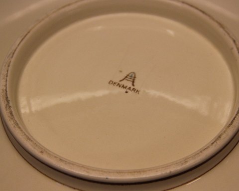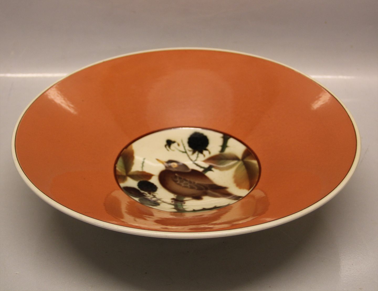Gunhild Aluminia kunstfajance 1453 Frugtskål, Solsort på brumbærgren 8.5 x 32 cm , Gunhild 1933
