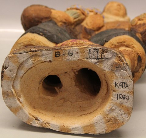 Dansk Stentøj B&G 1980 Unika Skulptur Tokvinder med blomster ca 26 x 31 cm Signeret K. Otto