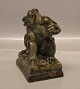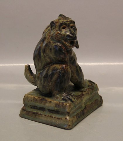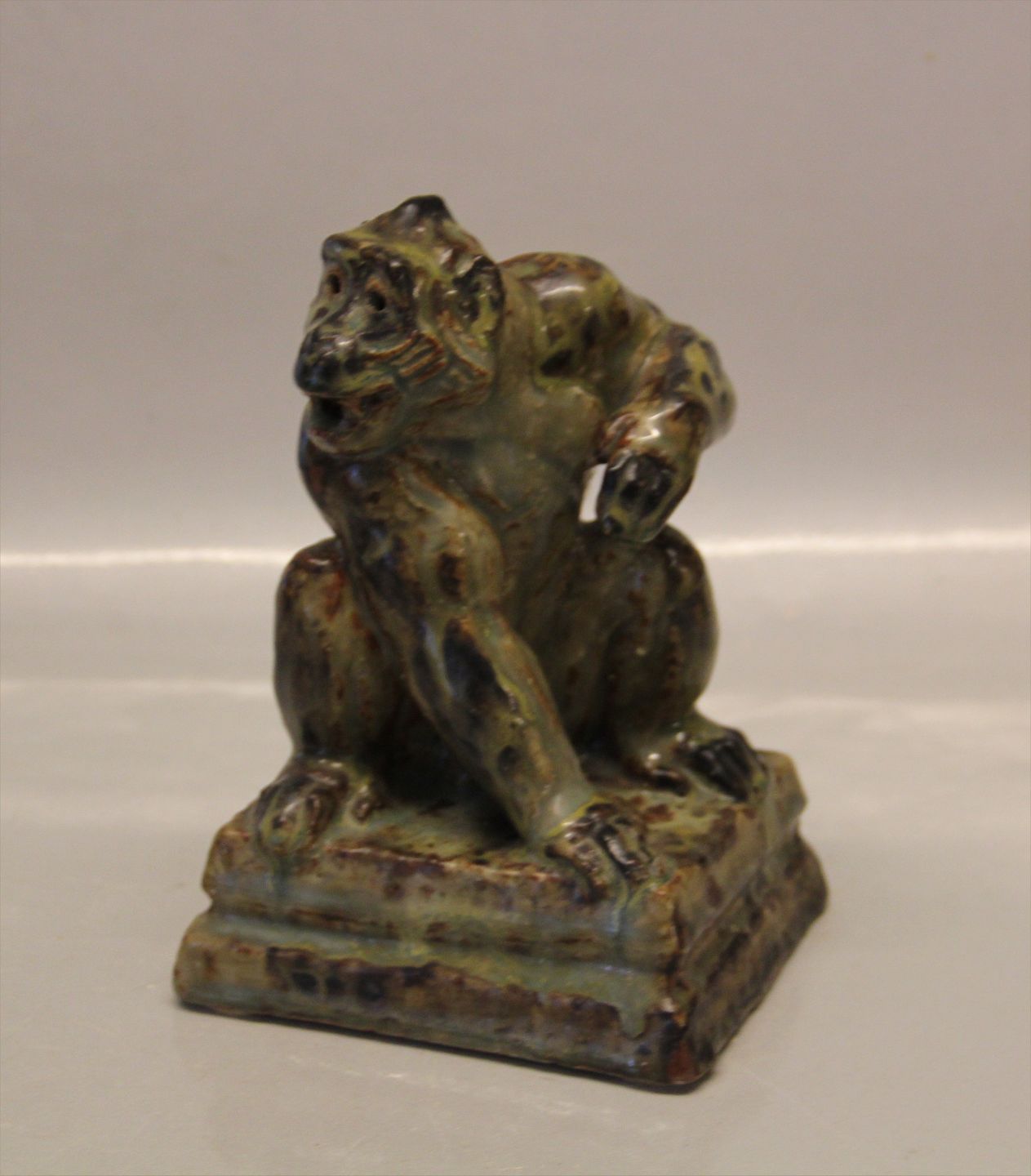 Kongelig Dansk Stentøj Unika - Abe siddende på firkantet fod 18 x 12 cm Signeret Knud Kyhn 1955