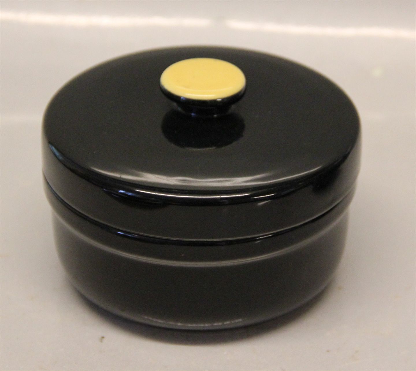 : Sukkerskål 8 x11 cm Congo Kronjyden retrostel i gult og sort. l I fin og hel stand.