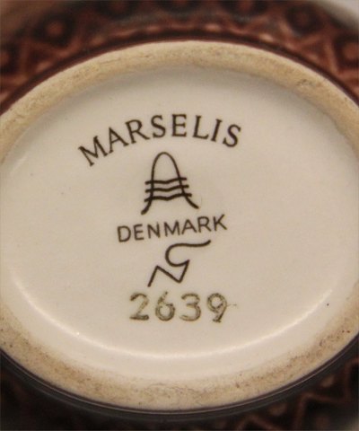 Aluminia kunstfajance 2639 Marselis Rødbrun Vase 11 cm, med rudemønster, Nils Thorsson, 1953