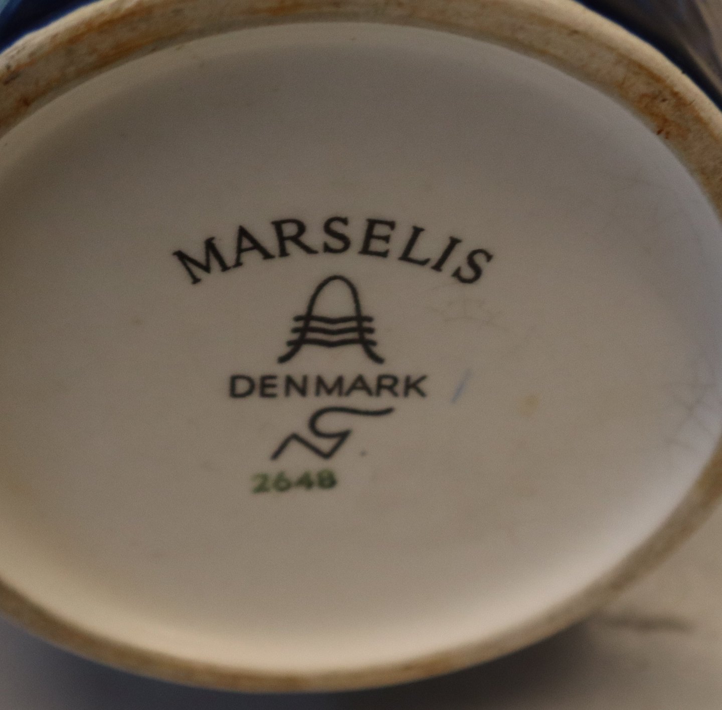 Aluminia kunstfajance 2648 Marselis Høj blå vase 27,5 cm, cylindrisk med rude/dråbemønster, Nils Thorsson 1953