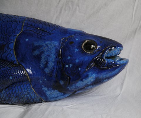 Den Blå Fisk af Jeanne Grut, Aluminia 3239 Blå Fisk Fajance 118 cm lang (lige version) Jeanne Grut 1963 1060311