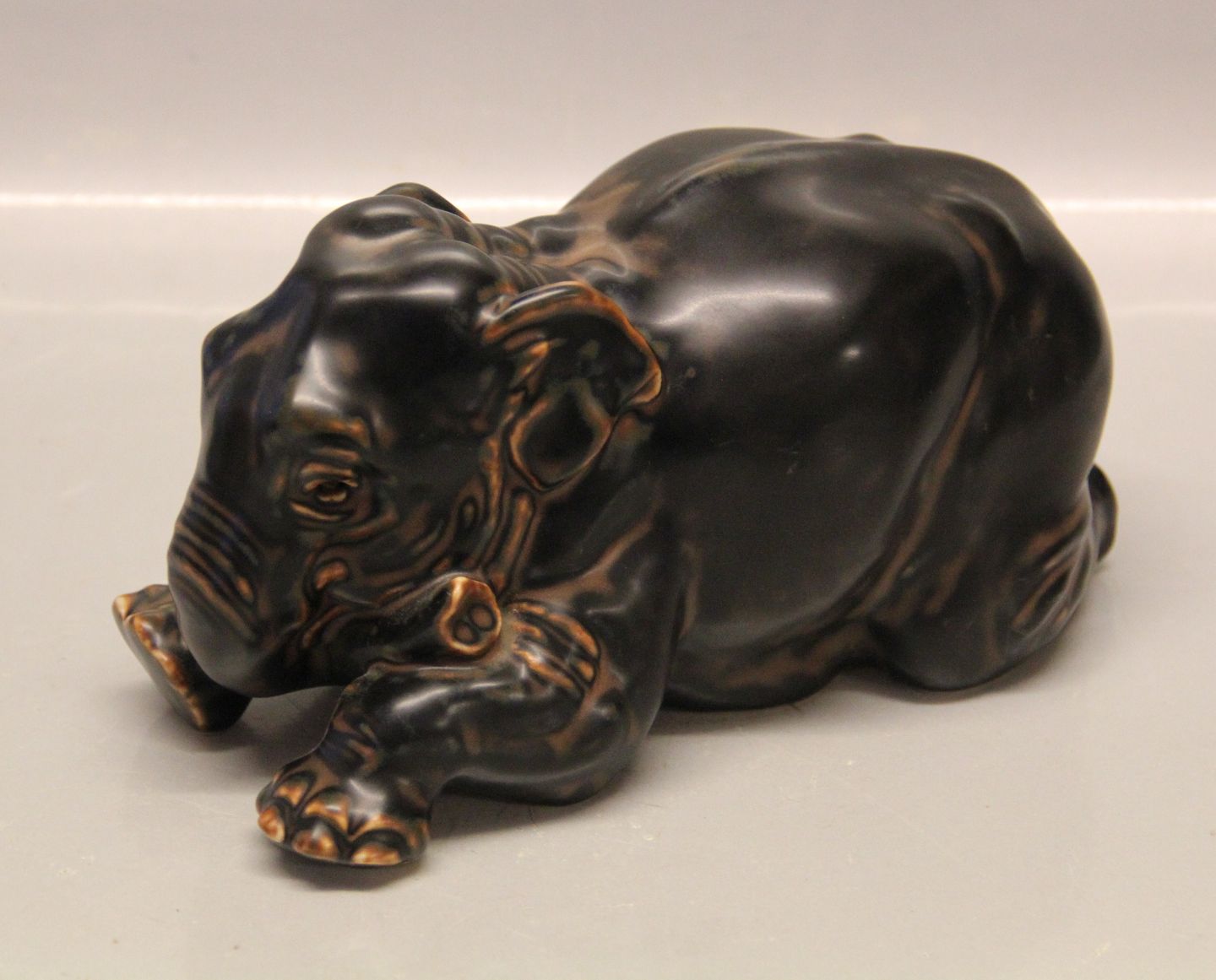 Kongelig Dansk Stentøj 22714 Kgl. Elefant, liggende ca 11 x 21.5 cm jan. 1980 JG
