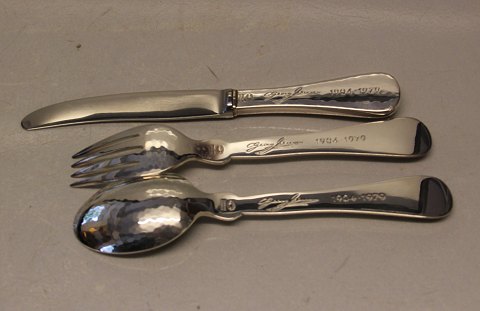 Beskrivelse: Georg Jensen Jubilæumssæt 1904-1979 Kniv, Ske og Gaffel Sterling Sølv ca 15 cm I orginale æsker