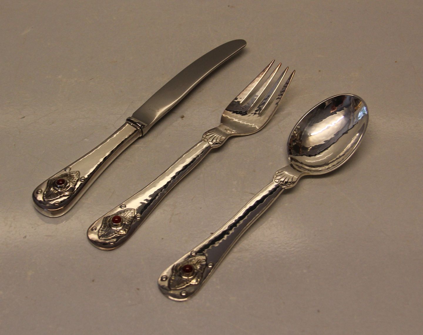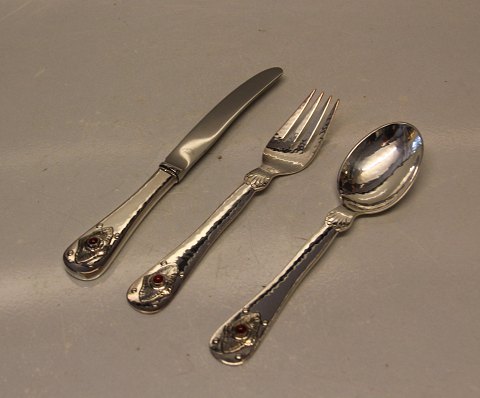 Georg Jensen Jubilæumssæt 1904-1979 Kniv, Ske og Gaffel Sterling Sølv med Carneol sten