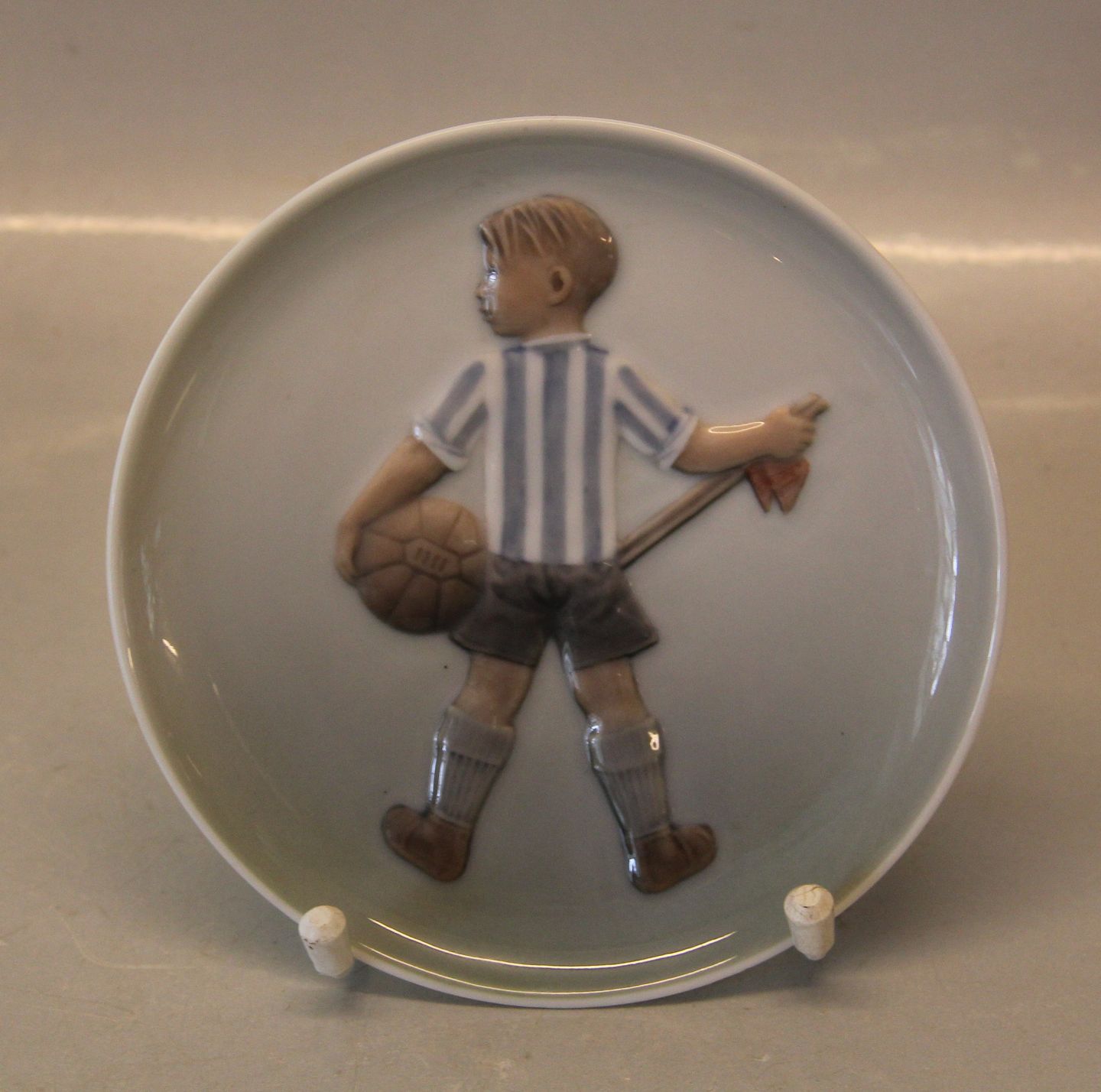 Beskrivelse: 3716 Kgl. Månedsplatte 14.5 cm marts, fodbolddreng fra Royal Copenhagen I hel og fin stand