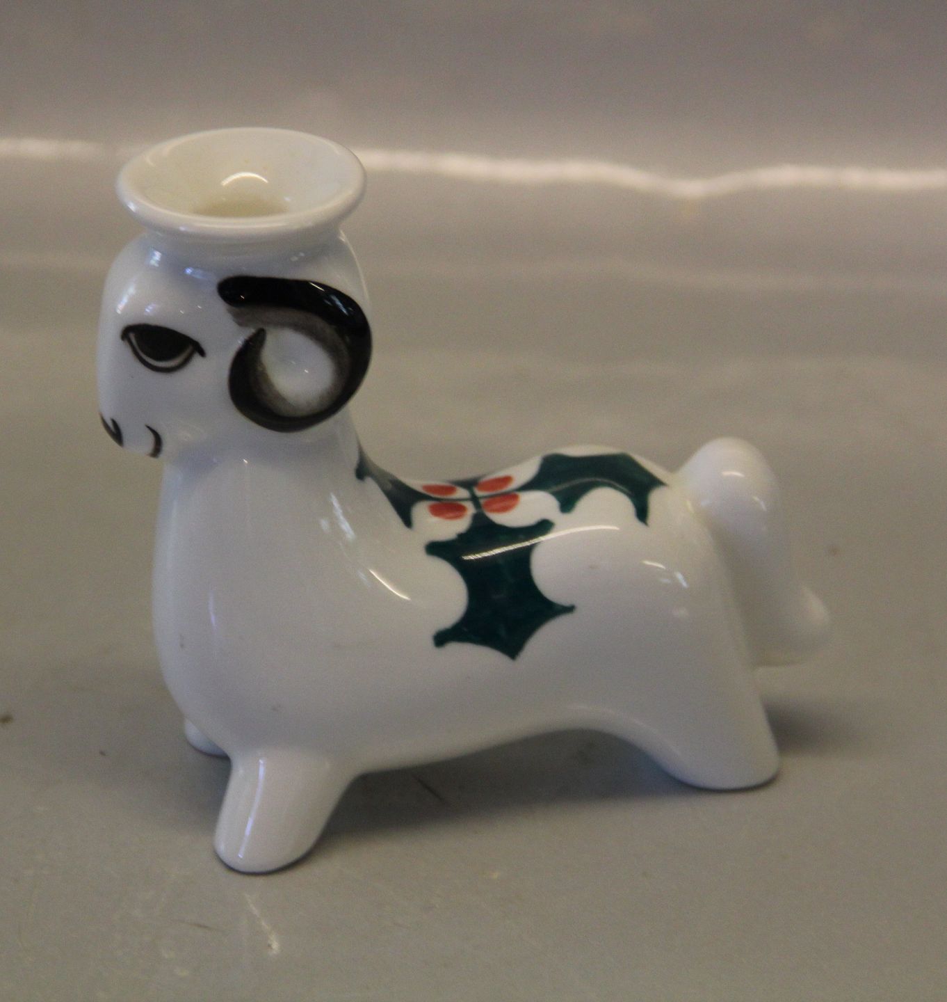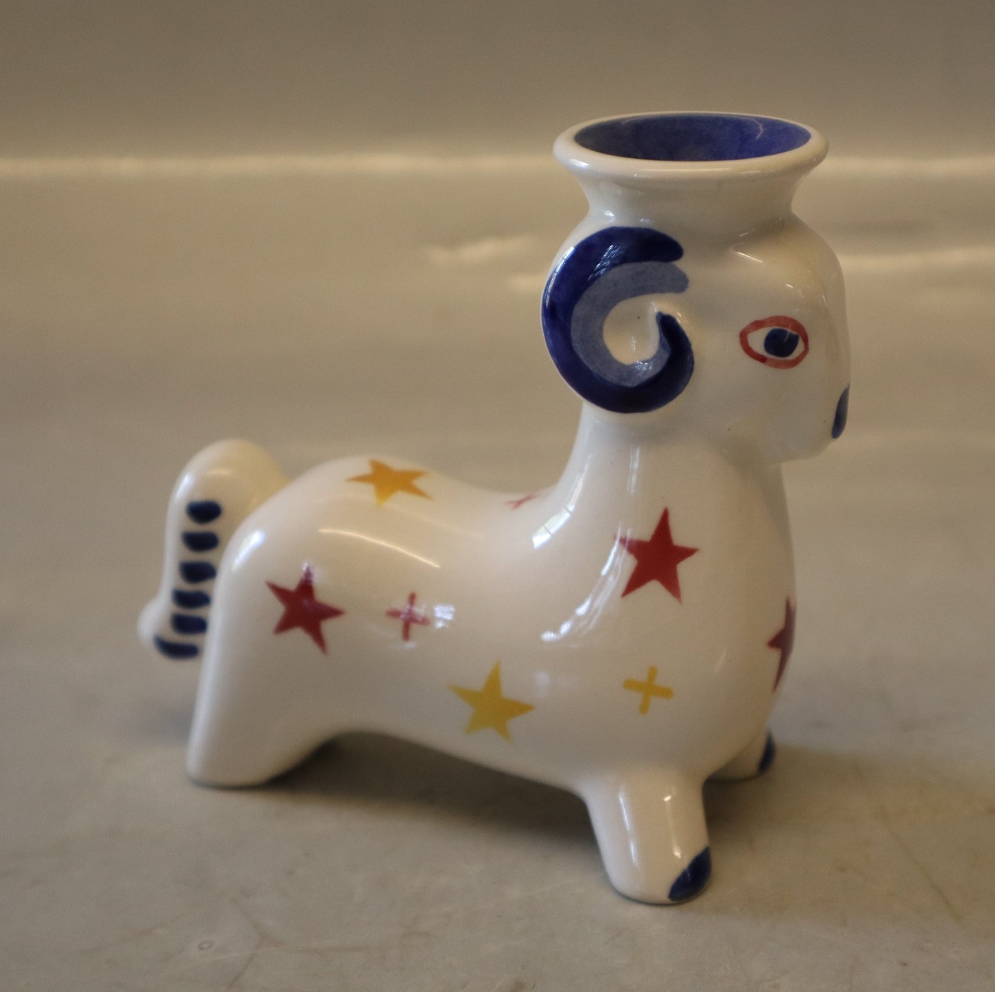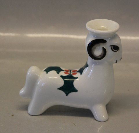 Beskrivelse: Royal Copenhagen Aluminia fajance 3-2272 Julebuk - lysestage grøn 10 x 10 cm i fin og hel stand