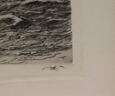 Beskrivelse: Carl Locher Marine 1891 ca 27 x 21 cm med guldramme Radering