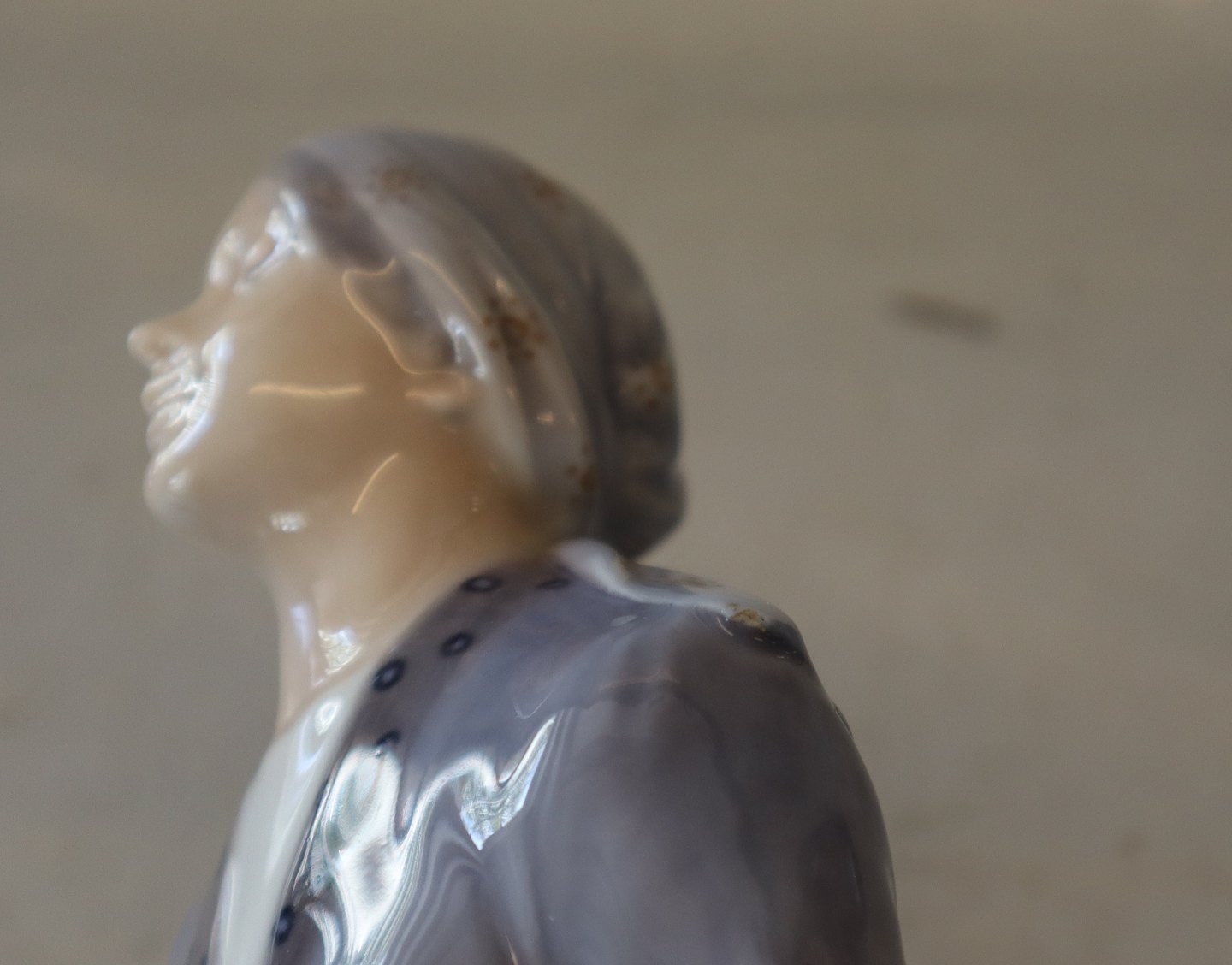 Beskrivelse: Gammel Art Nouveau figur 1404 Kgl. Mor i blåt tøj og barn Chr. Thomsen 1912 28 cm