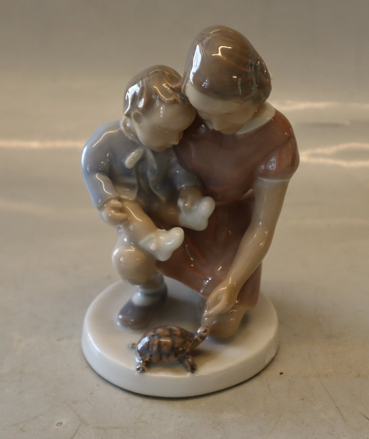 : Bing & Grøndahl B&G 2277 Mor og barn ser på skildpadde 11 cm I fin og hel stand.