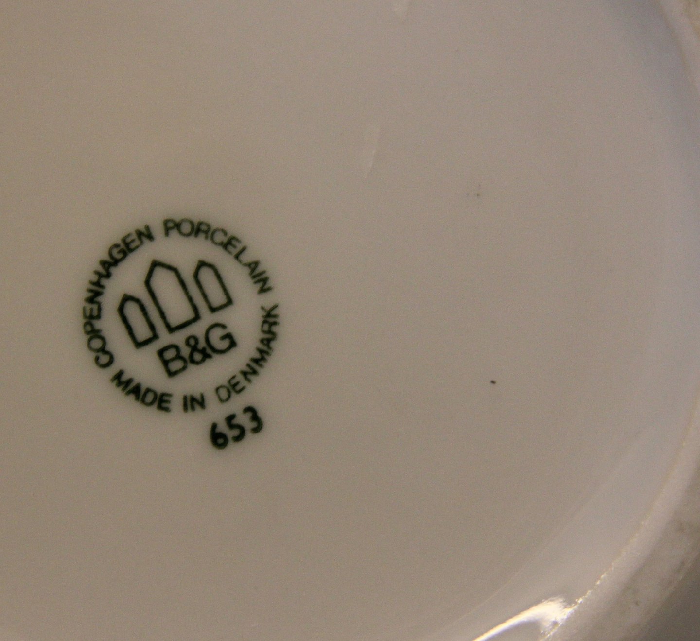Tekande: Bing & Grøndahl 653 Hvid med brun dekoration m bogstaver - tekande 20 x 8 cm