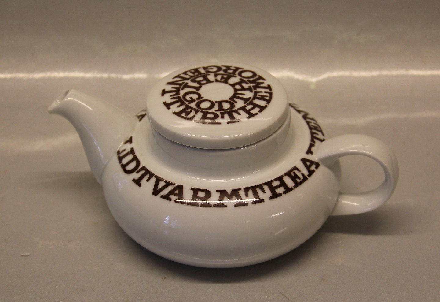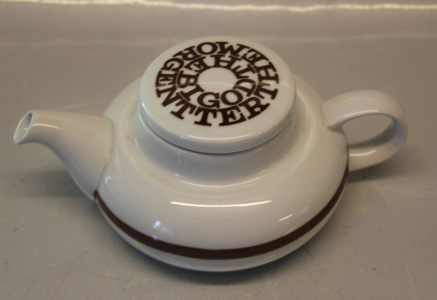 Beskrivelse: Bing & Grøndahl 653 Hvid med brun dekoration Bogstaver - tekande 20 x 8 cm