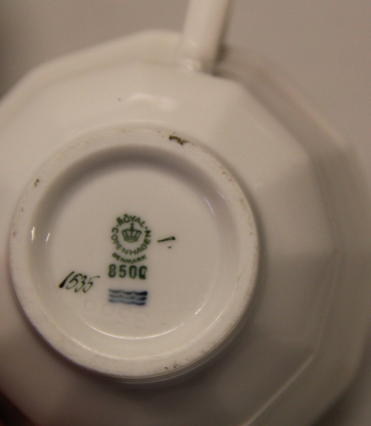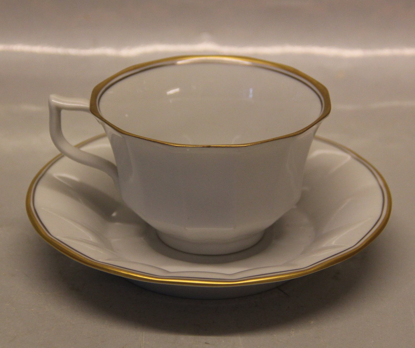 Palads 8500-1535 Kop og underkop 500-1161(081-082) Palace Kgl. hvid kantet stel med dobbelt kant grå og guld Royal Copenhagen I hel og fin stand