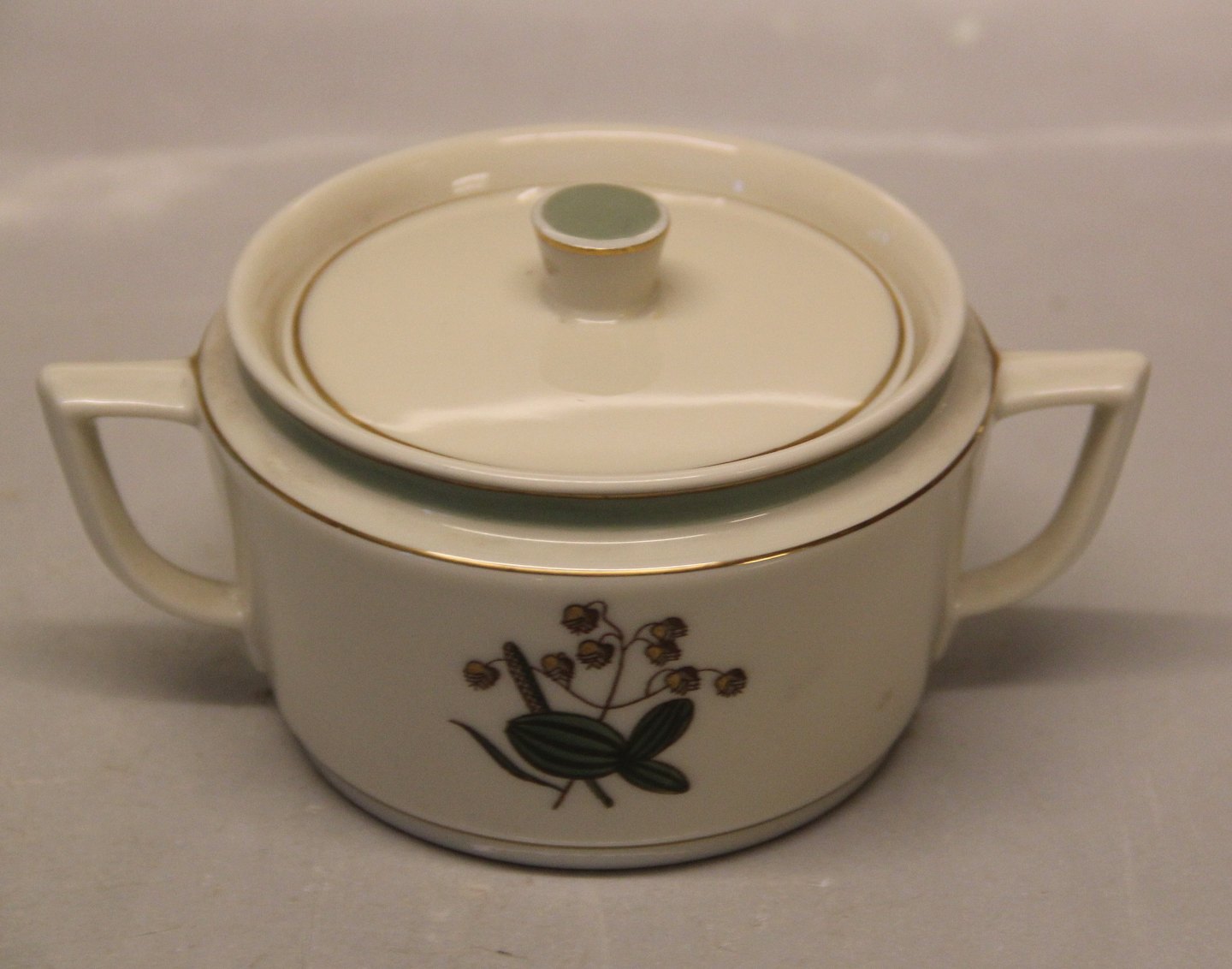 884-9725 Lille sukkerskål med låg Hjertegræs #884 Kgl. spise- og kaffestel fra Den kongelige Porcelænsfabrik Qaking Grass