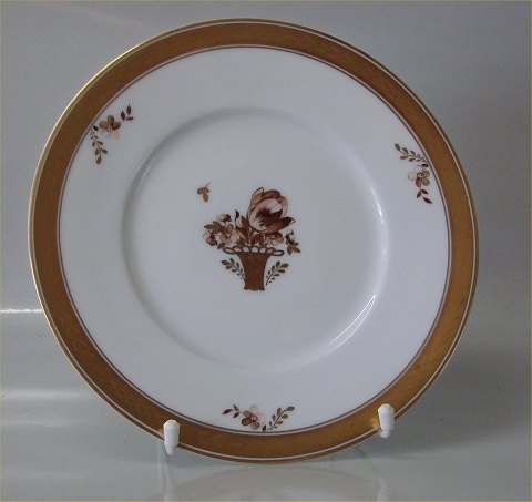 10520-595 Frokosttallerken 22,5 cm Kgl. Royal Copenhagen Guld dekoration på hvidt porcelæn 1927. I hel og fin brugt stand Golden Basket