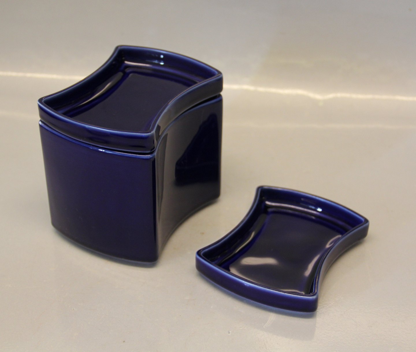 Beskrivelse: 865-3 Obevaringsbox 9 x 11 + låg, Mørkeblå B&G Hank. Design Erik Magnussen I fin og hel stand.