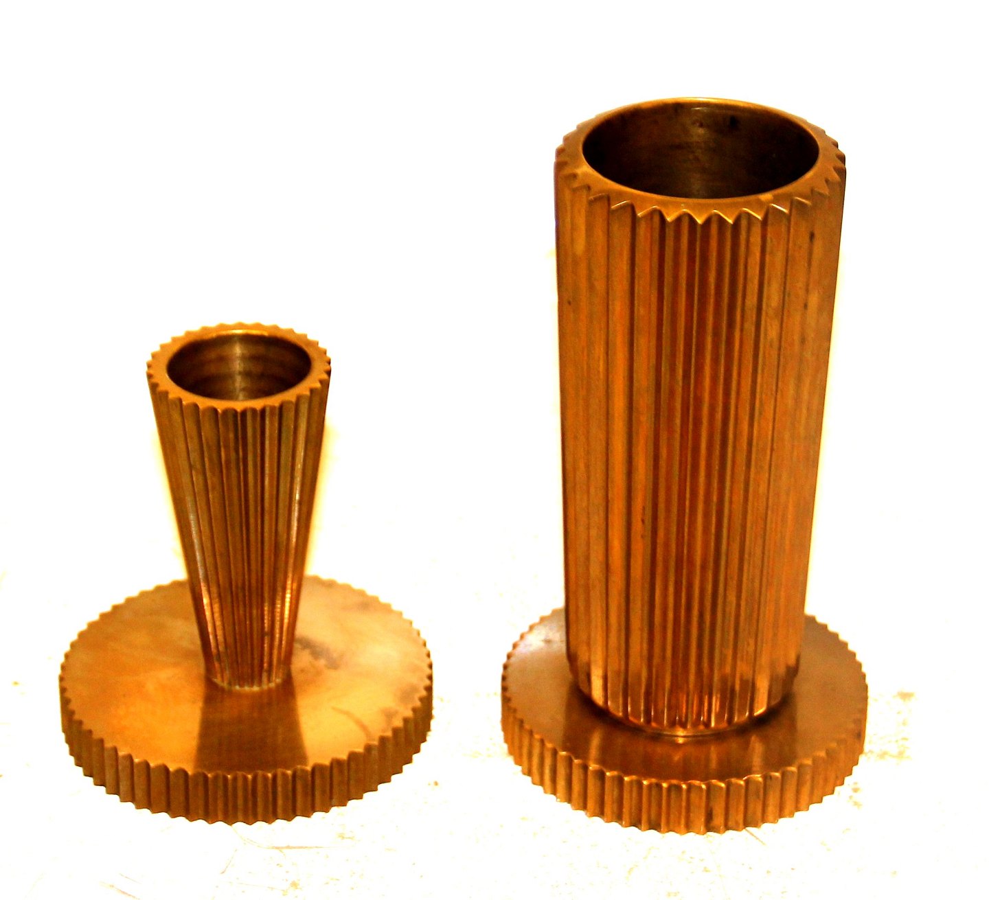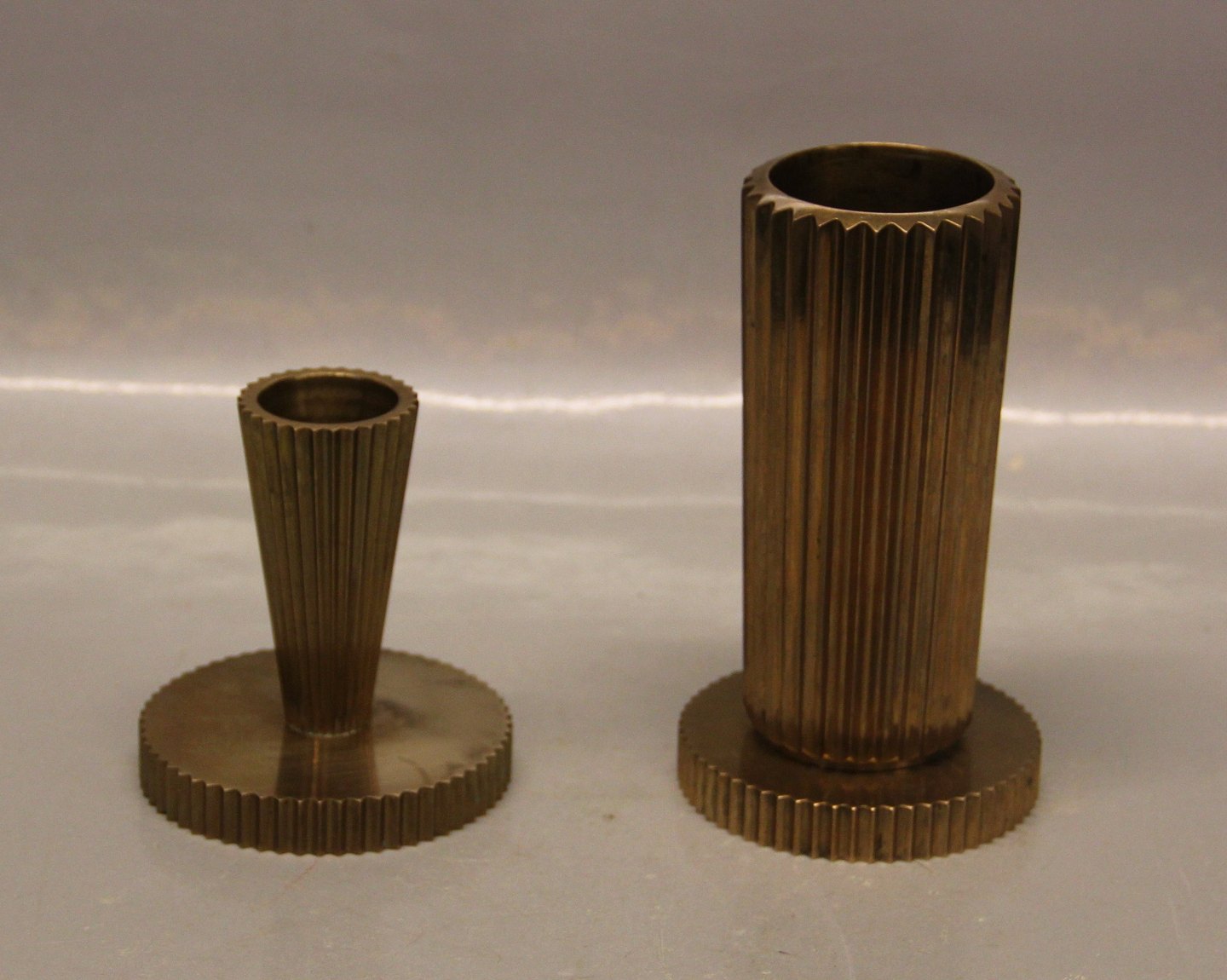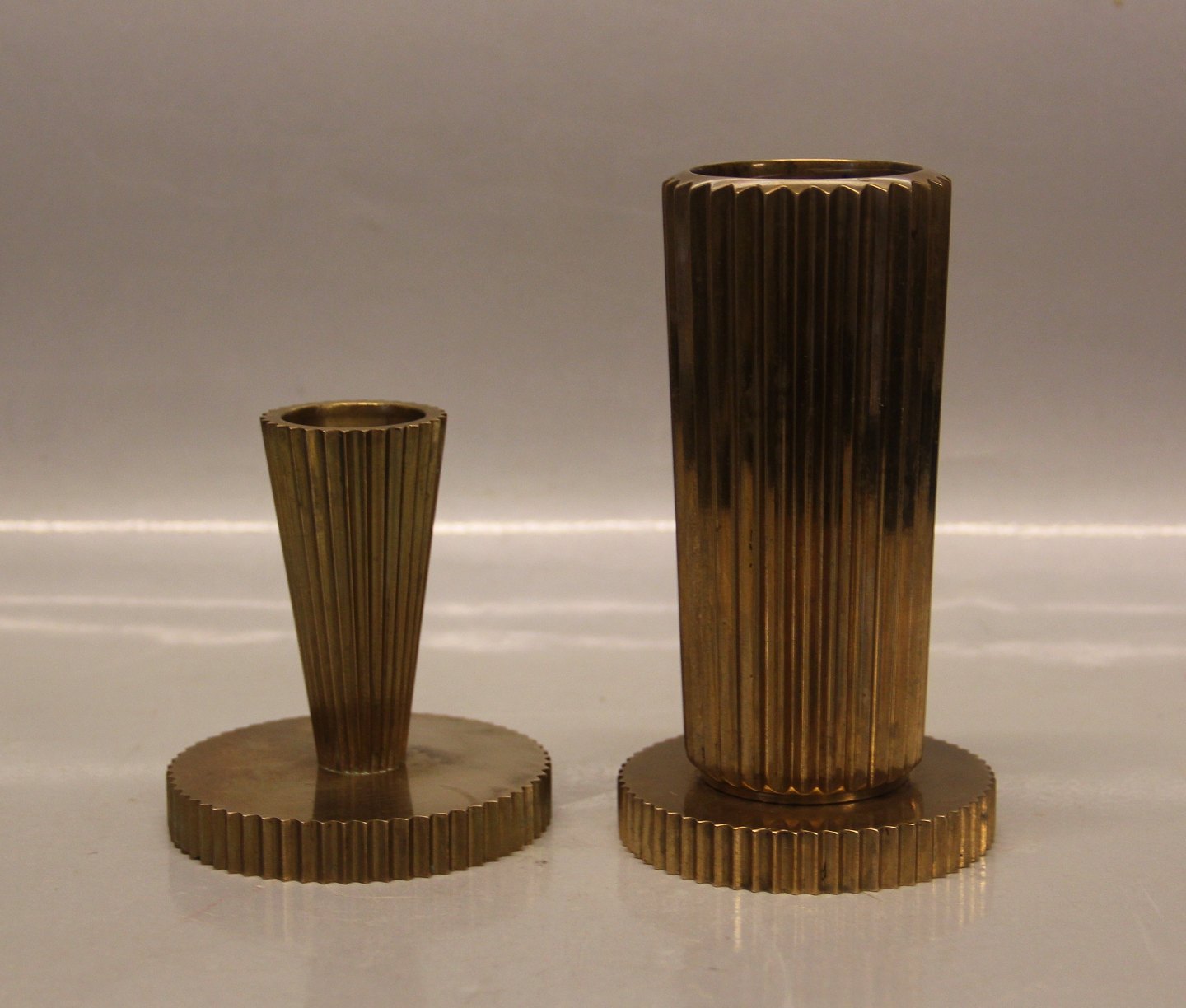 Beskrivelse: Tinos Kanneleret Lysestage 13.5 cm Vase Patineret forgyldt bronze. Made in Denmark Fin patina Moderne Dansk Design