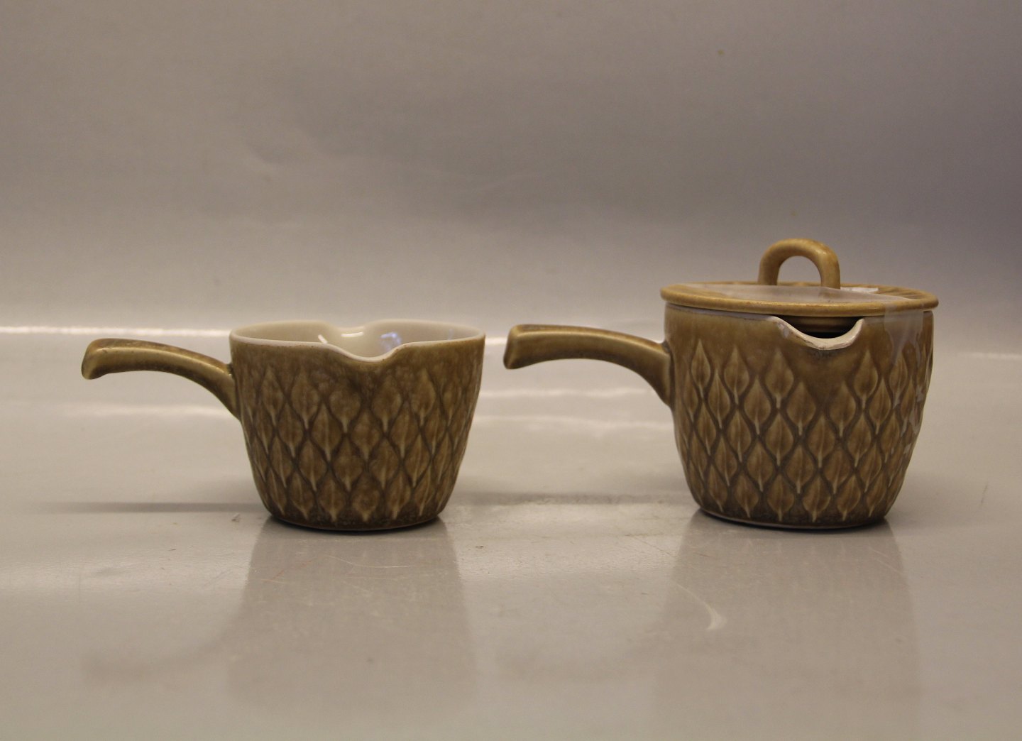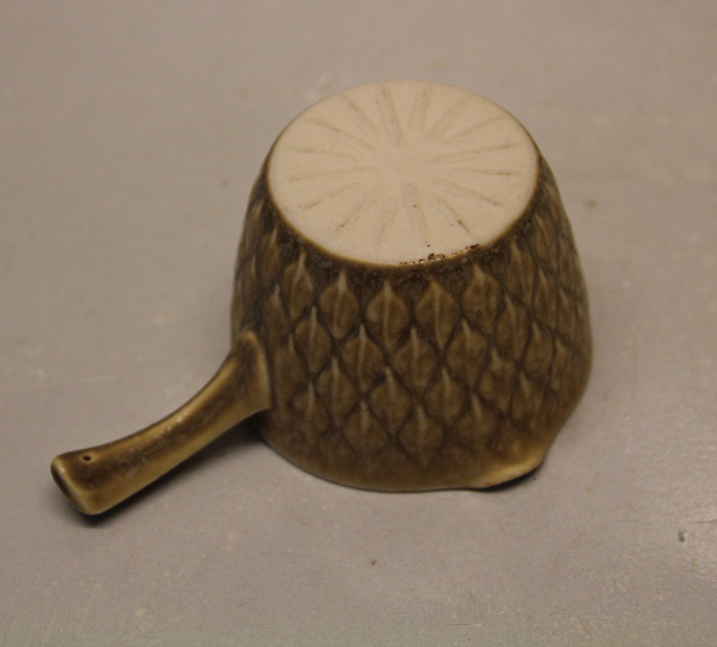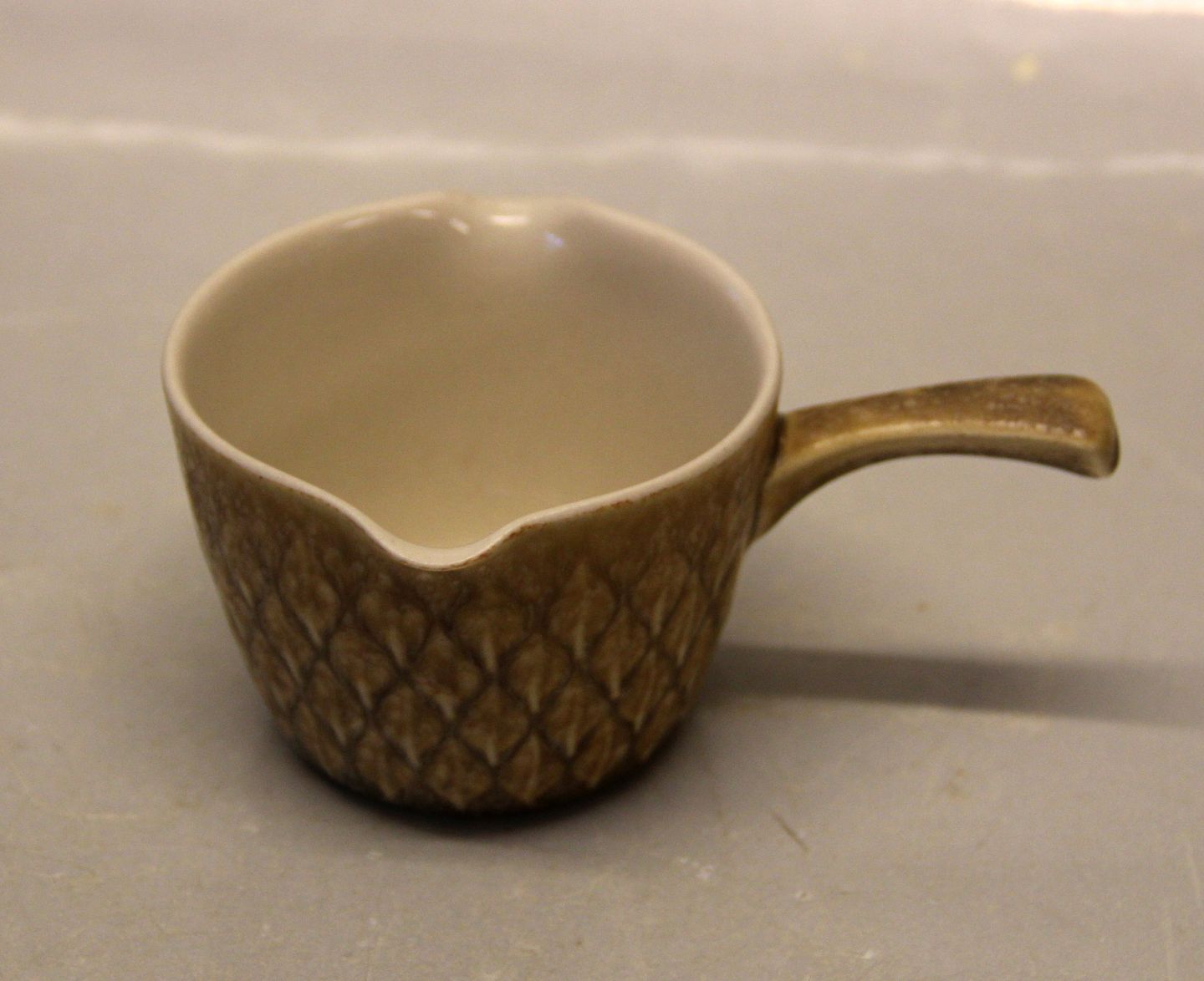012 Lille Smørsauce kande med hank 6 x 9 x 13 cm Bing & Grøndahl B&G Relief Quistgaard Nissen Kronjyden stentøjsstel