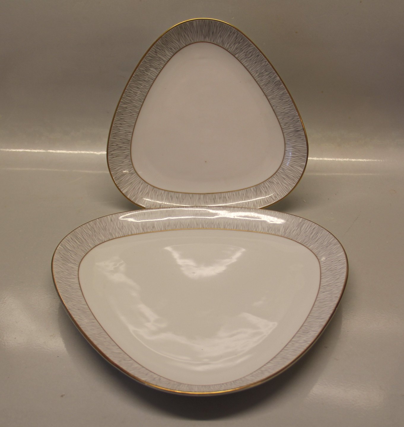 Trekantet fad, lille 20 cm KohINoor Königl. pr. Tettau Tysk Kgl Kaffe- og spisestel med guldkant Porzellan Koh i Noor