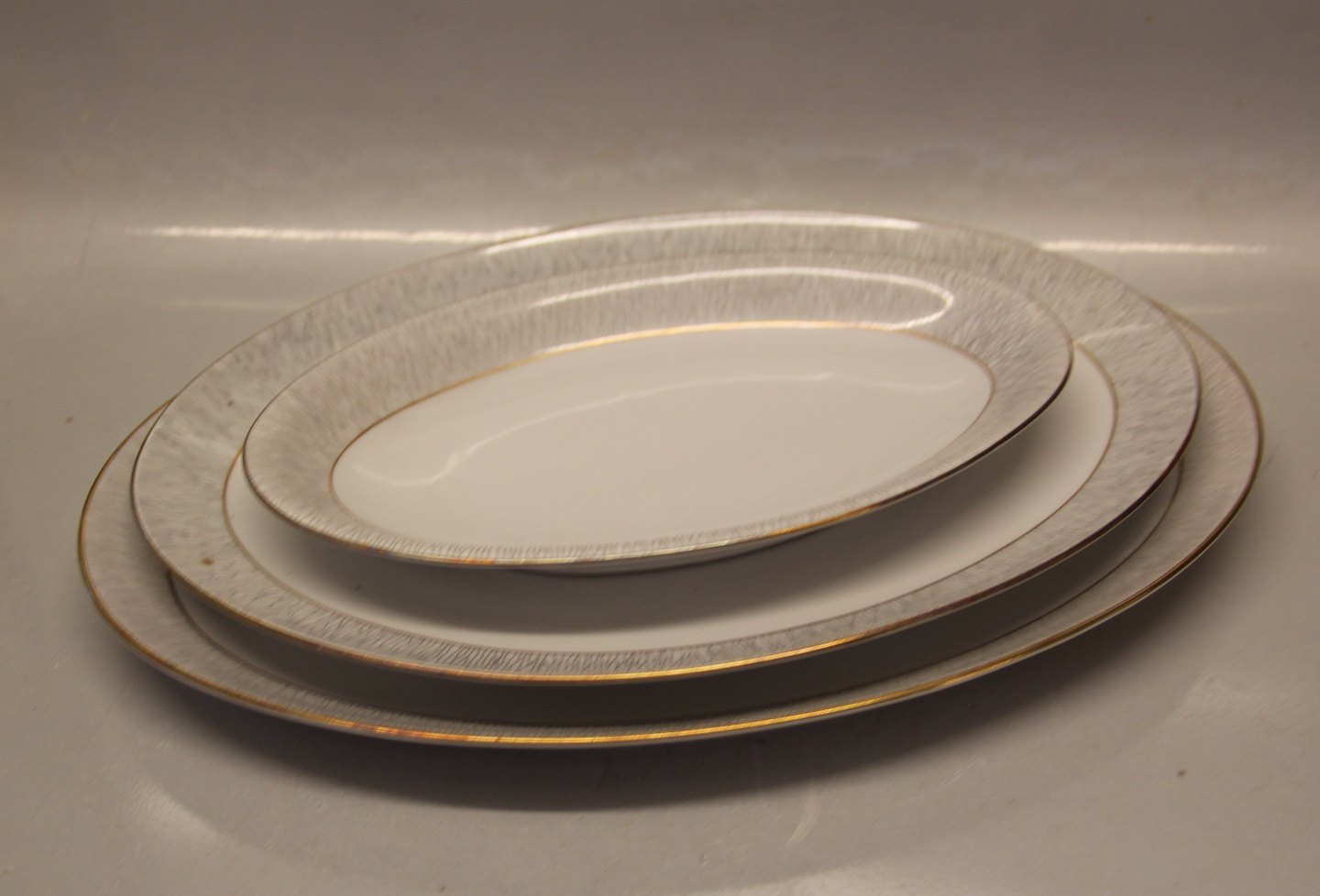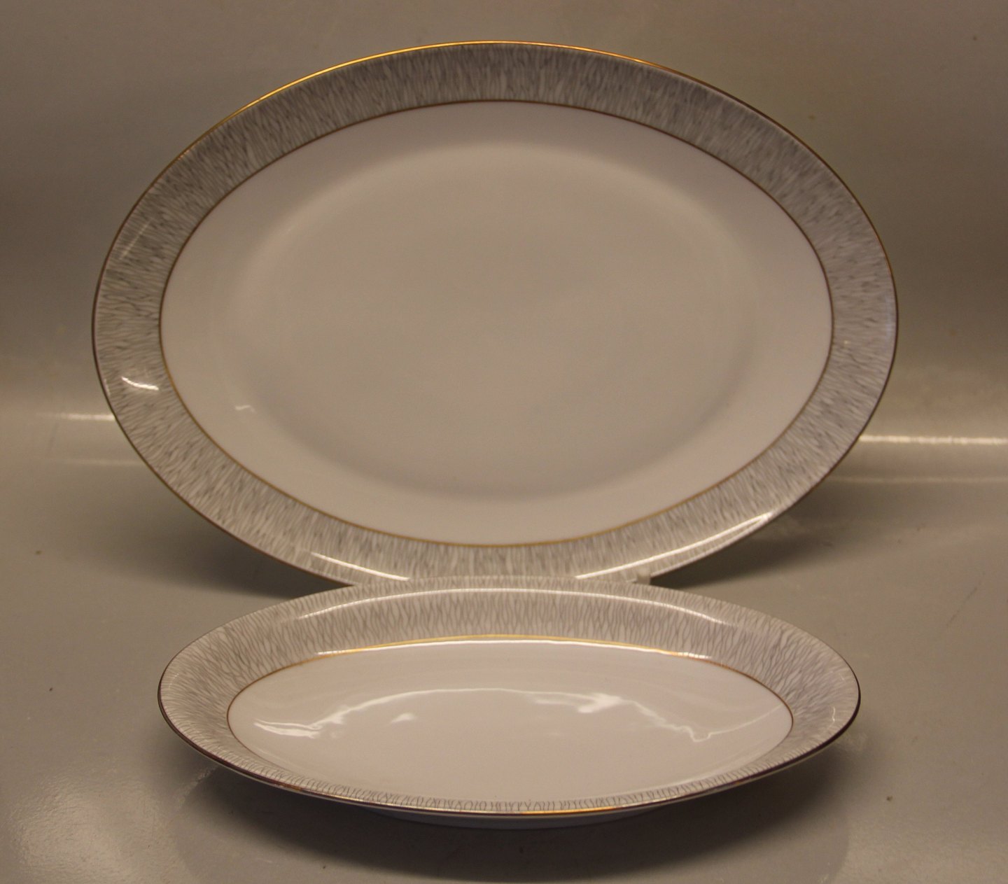 Ovalt stegefad, stort 34 cm KohINoor Königl. pr. Tettau Tysk Kgl Kaffe- og spisestel med guldkant Porzellan Koh i Noor