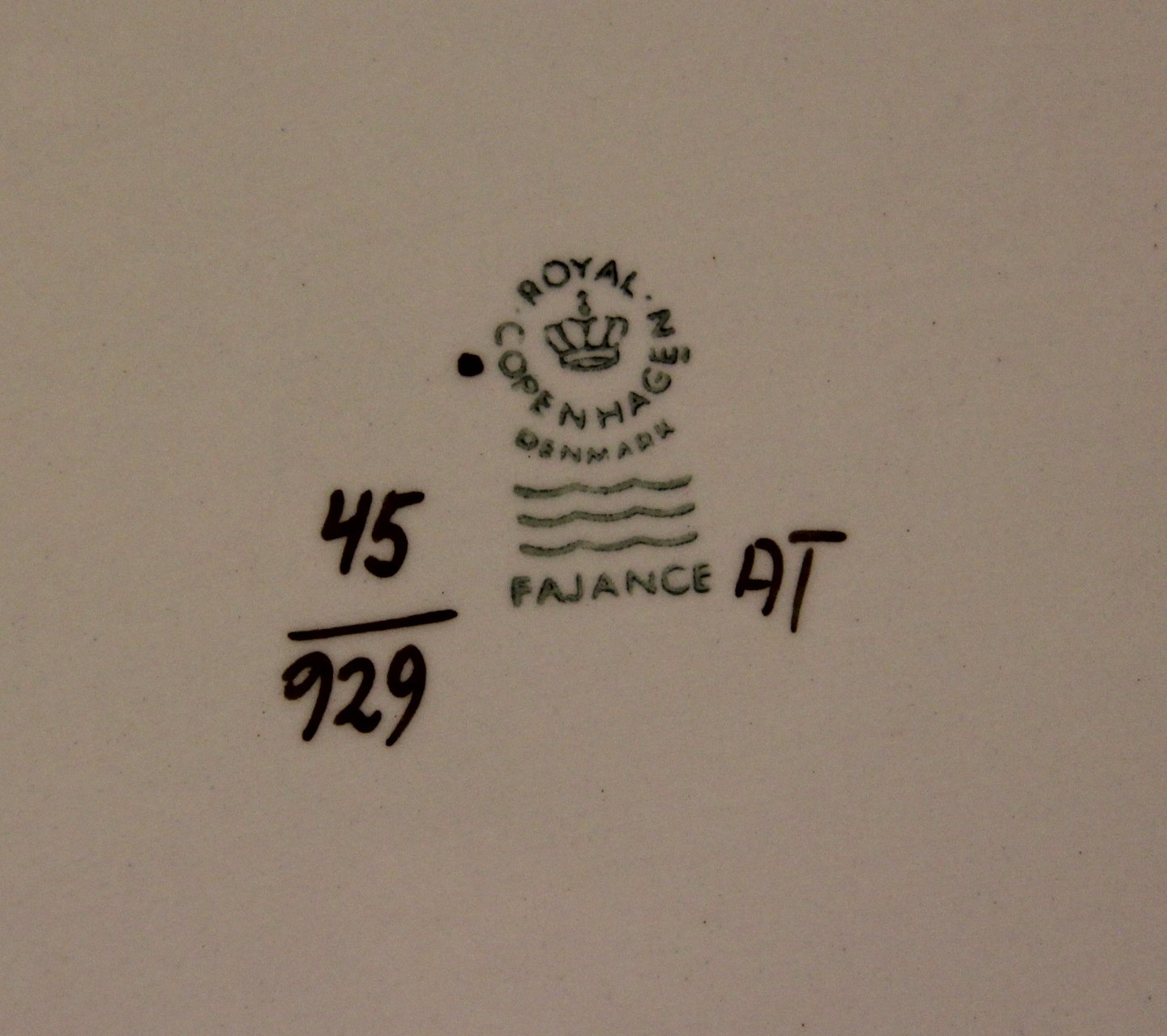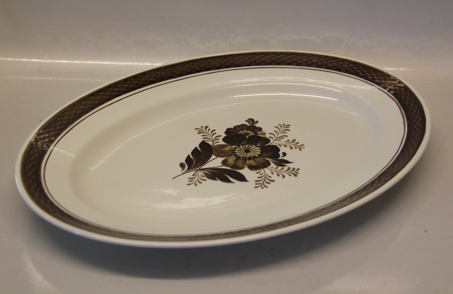 0929-45 Fad, ovalt 27 x 38 cm Royal Copenhagen Aluminia Brun Tranquebar I fin og hel stand
