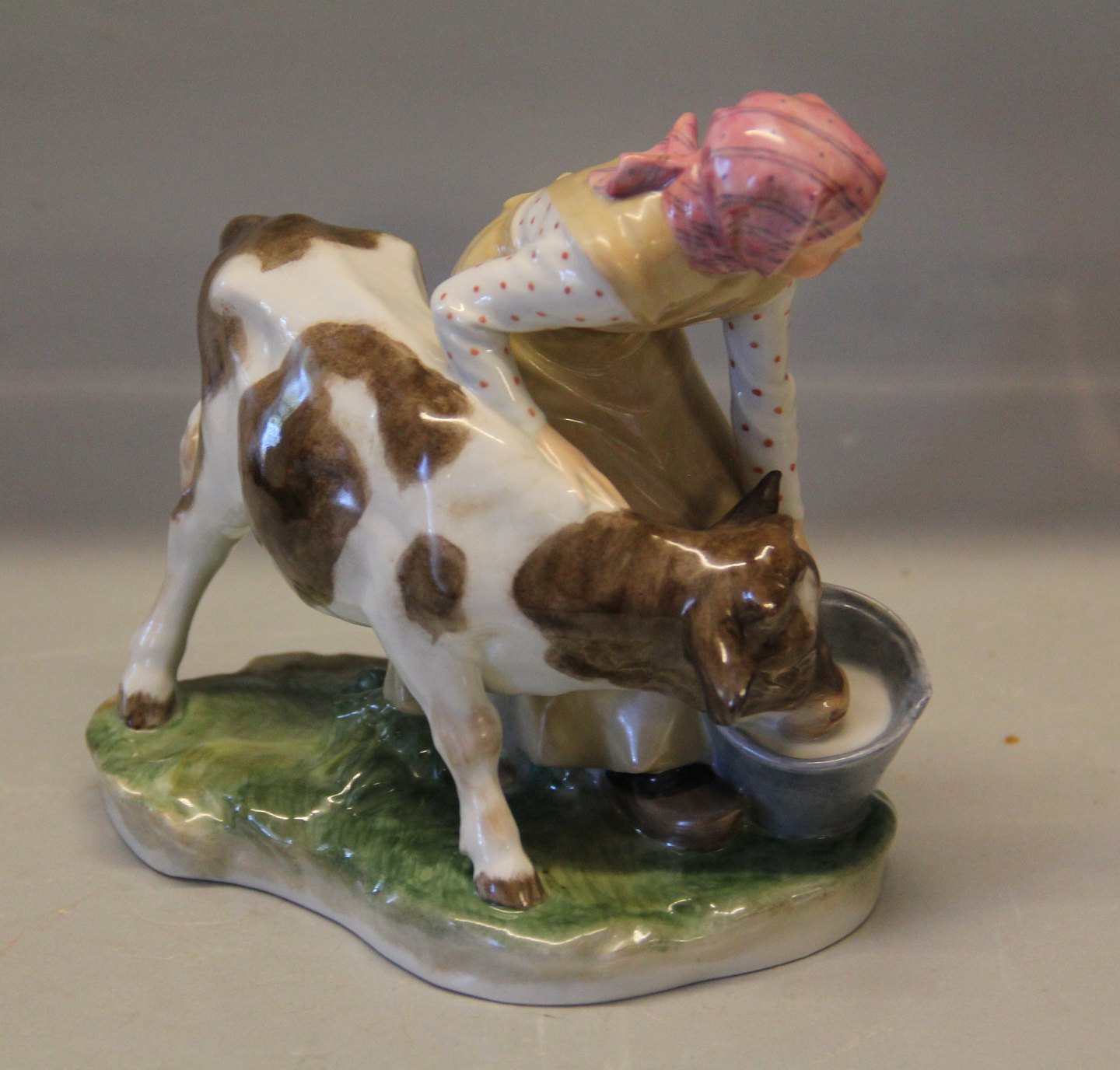 Kgl Porcelæn Pige med kalv 779 Chr. Thomsen 16 cm Juliane Marie malet i overglasur