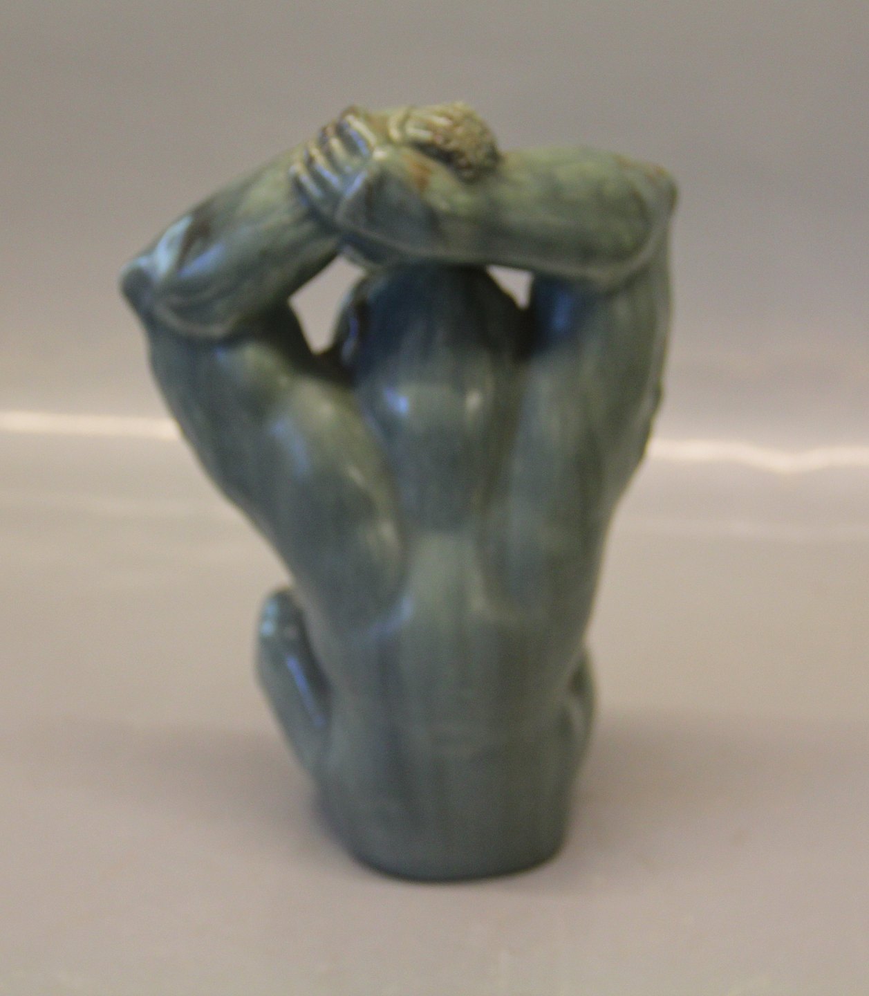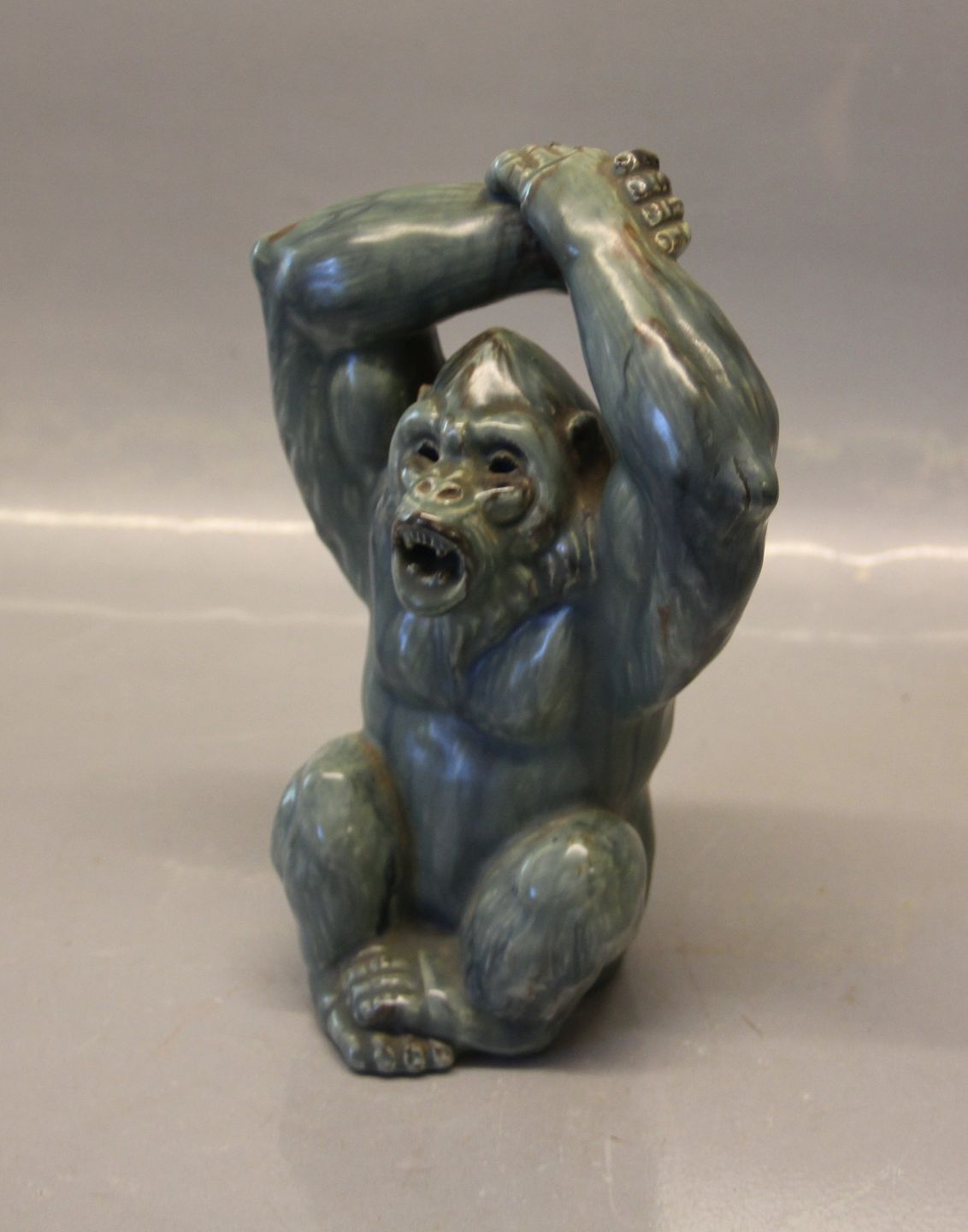 Beskrivelse: Arne Ingdam Gorilla - Abe 20 cm A.J. Ingdam grøn glasur Dansk keramik og stentøj