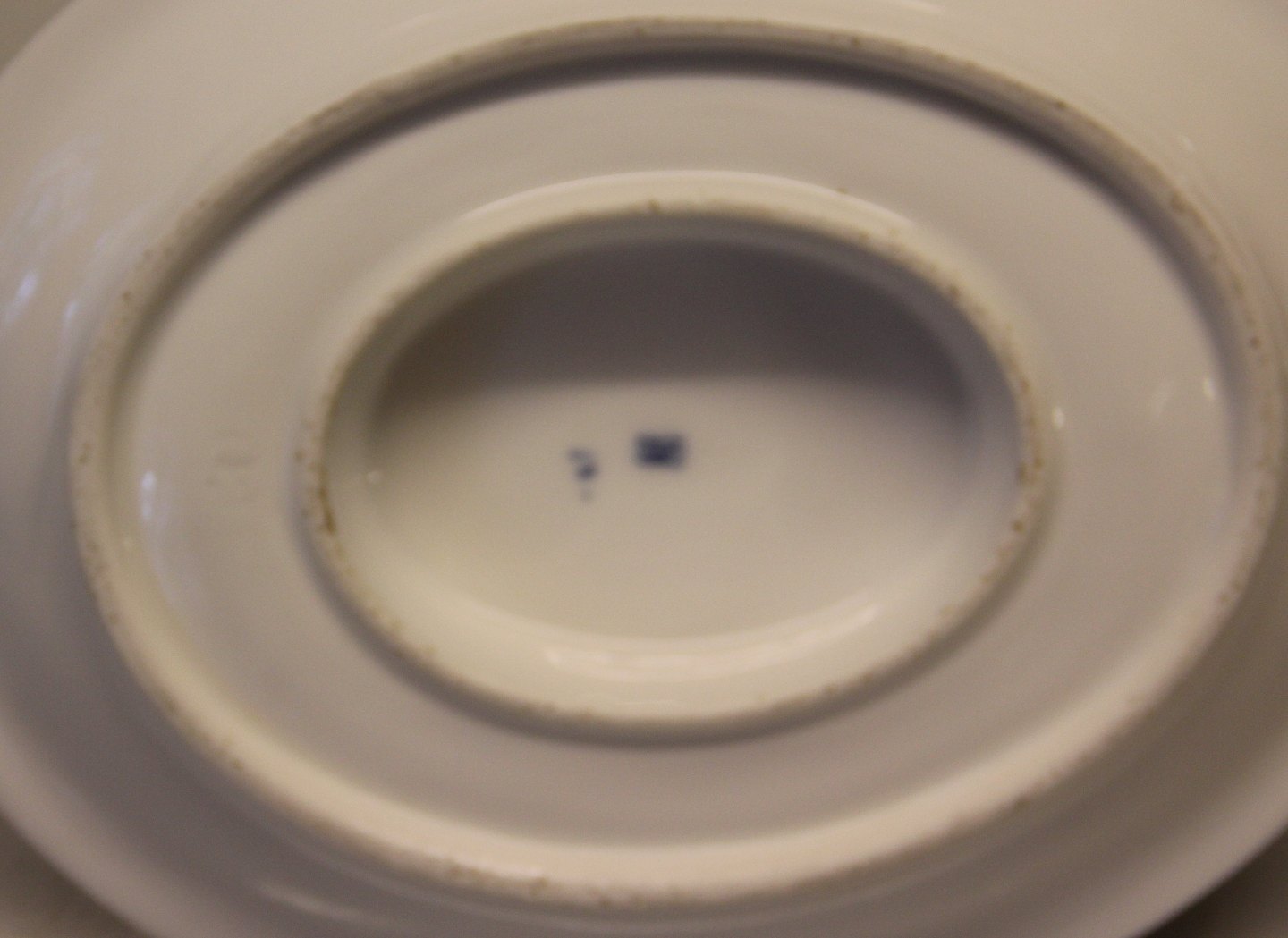 Kongelig Dansk Porcelæn Musselmalet 201-1 Sauceskål på fad, oval 16 x 22 cm
