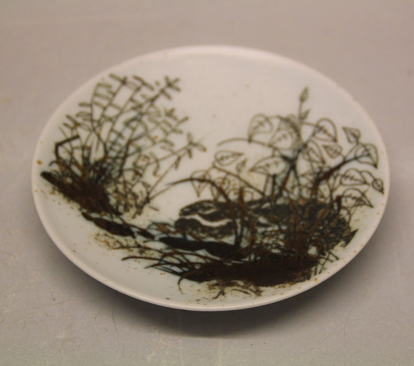 Beskrivelse: Royal Copenhagen Aluminia fajance 1077-5403 Kgl. Aluminia Diana stentøjfad med kanin 13.3 cm Nils Thorsson