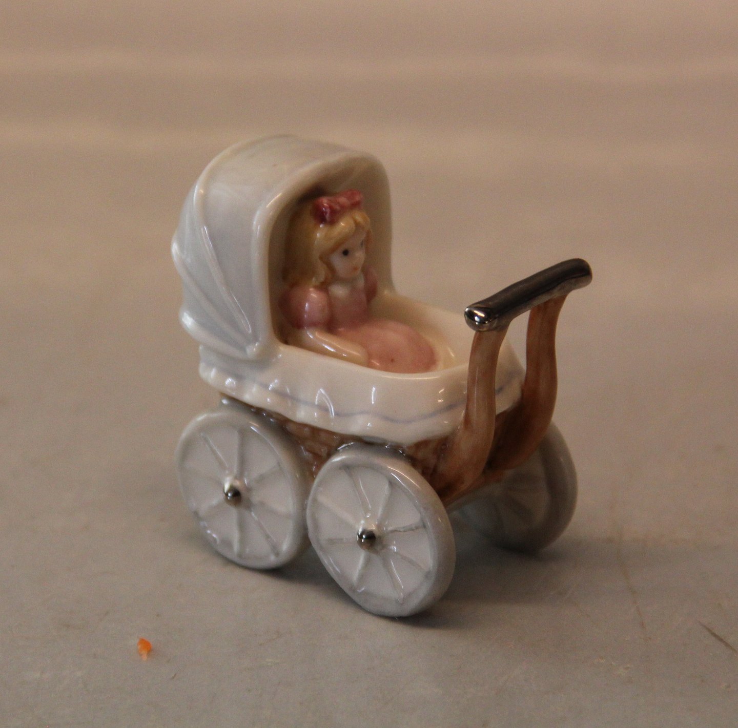 Beskrivelse: Kgl. figur fra Royal Copenhagen 0292 Kgl. Dukkevogn 5.5 x 5.5 cm (1249292) Mini-collection Toys Sven Vestergaard I hel og fin stand