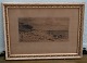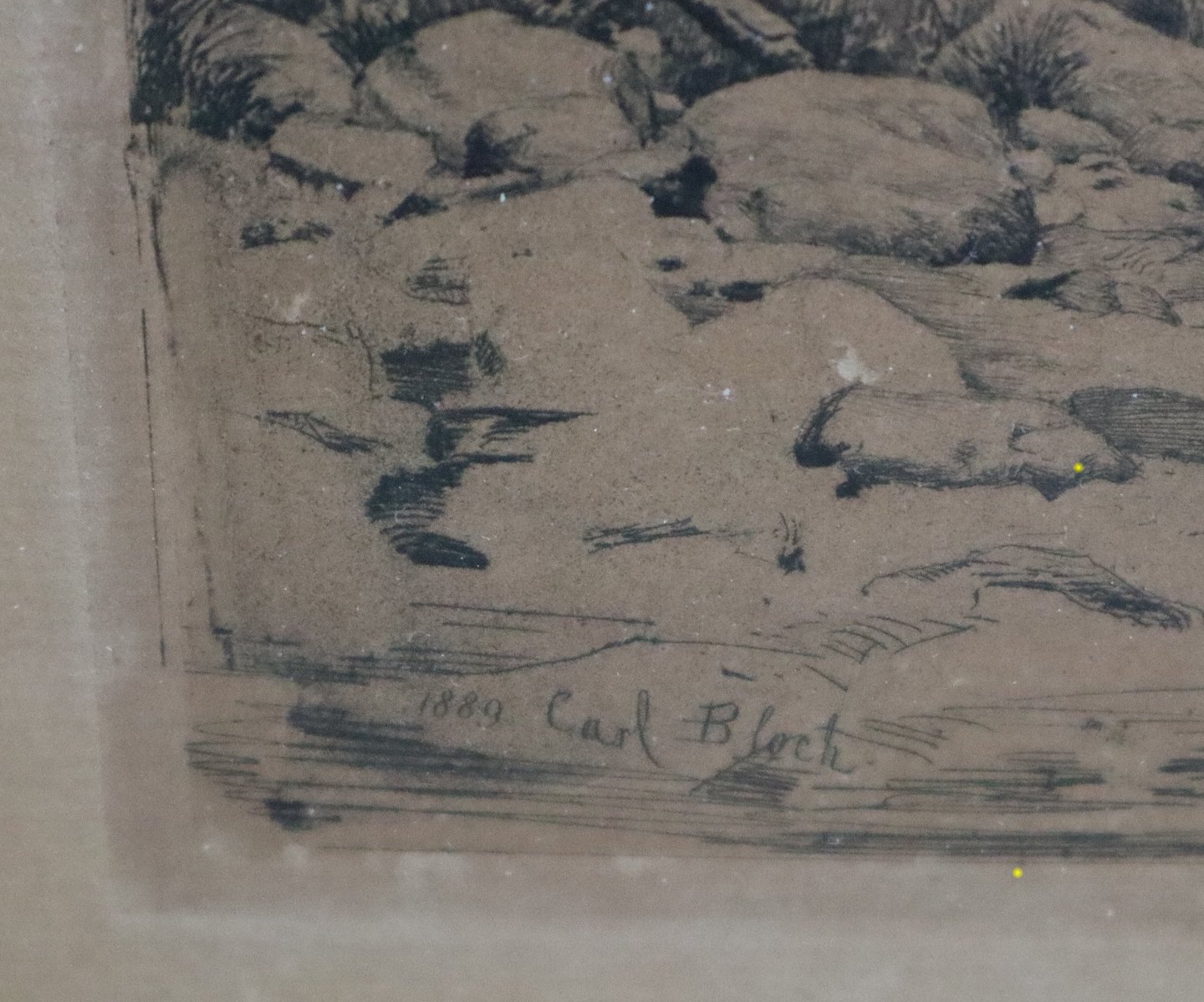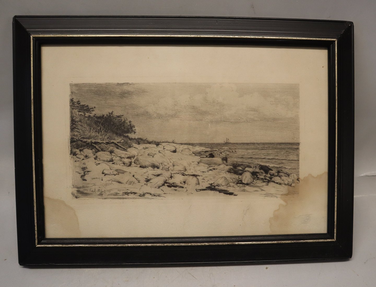 Carl Bloch Radering af kystlandskab 1889 29 x 40 cm iinklusiv gl. sort træramme