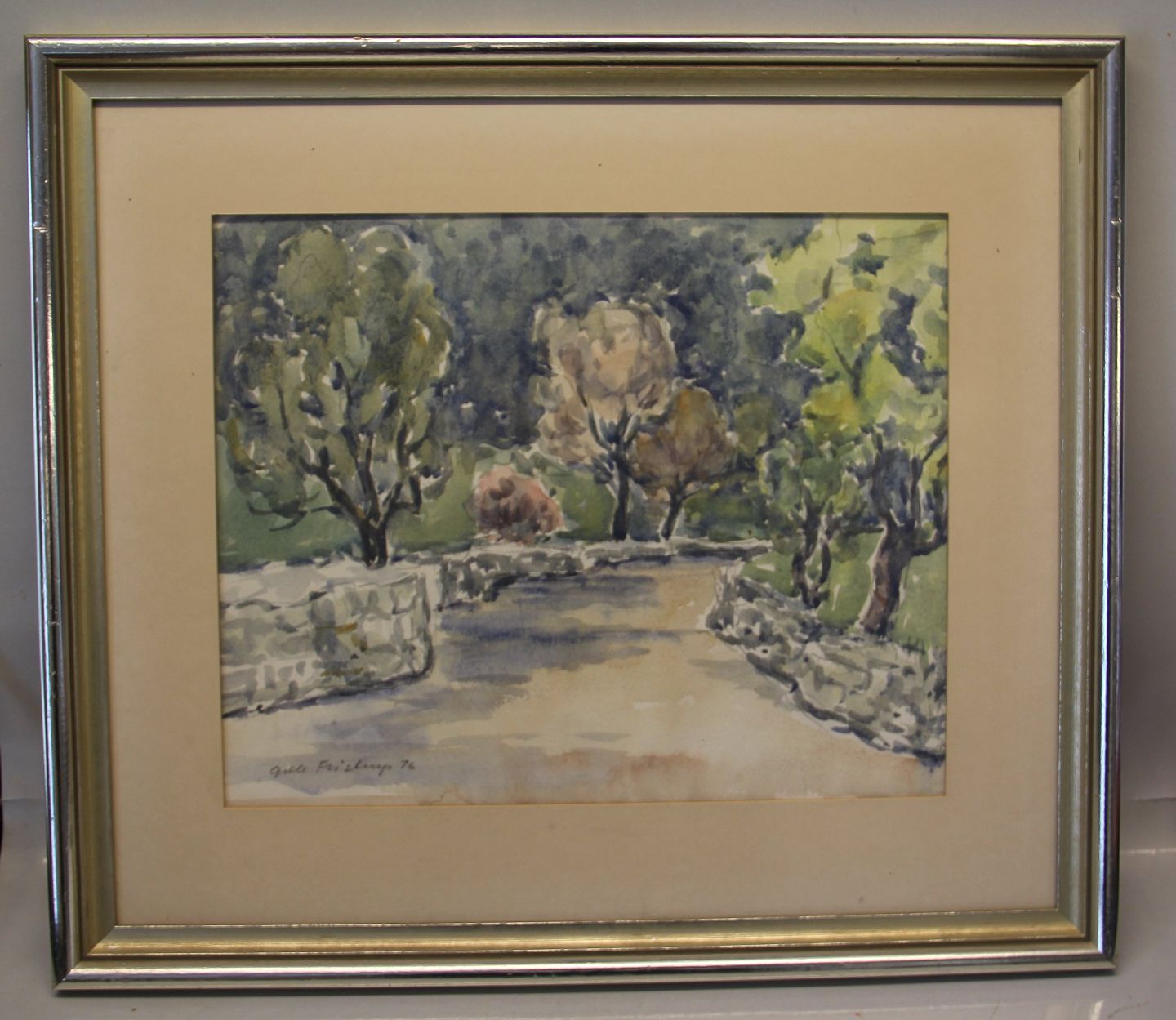 Grete Fristrup (1905-1995) Akvarel indrammet i flot sølvramme 43 x 49 cm