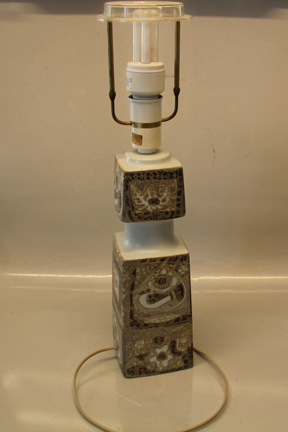 Aluminia kunstfajance 719-3595 92-7194 Brun lampefod ca 30 cm + fatning etc 2850 Baca 1968 Nils Thorsson for Fog Mørup