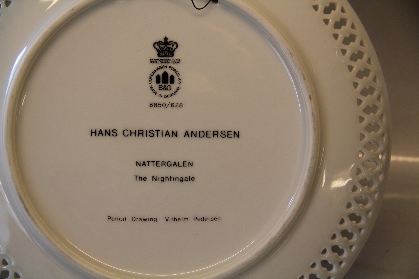 Bing & Grøndahl Platte B&G 8850-628 H. C. Andersen Nattergalen 21 cm Vilhelm Pedersenn