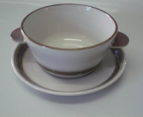 Suppekop med to øre og underkop 16,5 cm SELANDIA Dansk stentøj spise- og kaffestel Bouilionkop