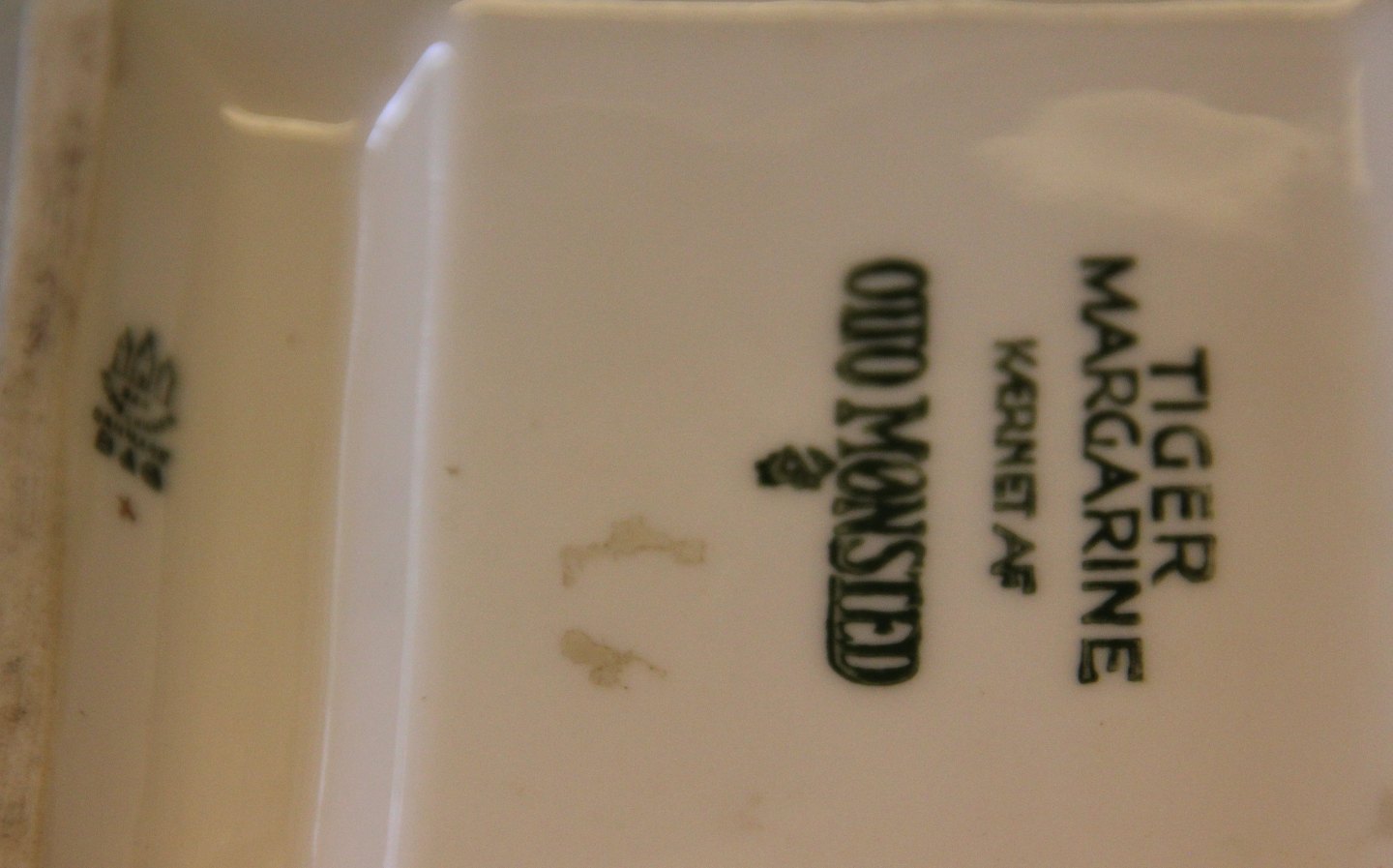 Bing & Grøndahl Reklame Emne B&G Mønt bakke 8.5 x 9.5 cm Tiger Margarine Otto Mønsted