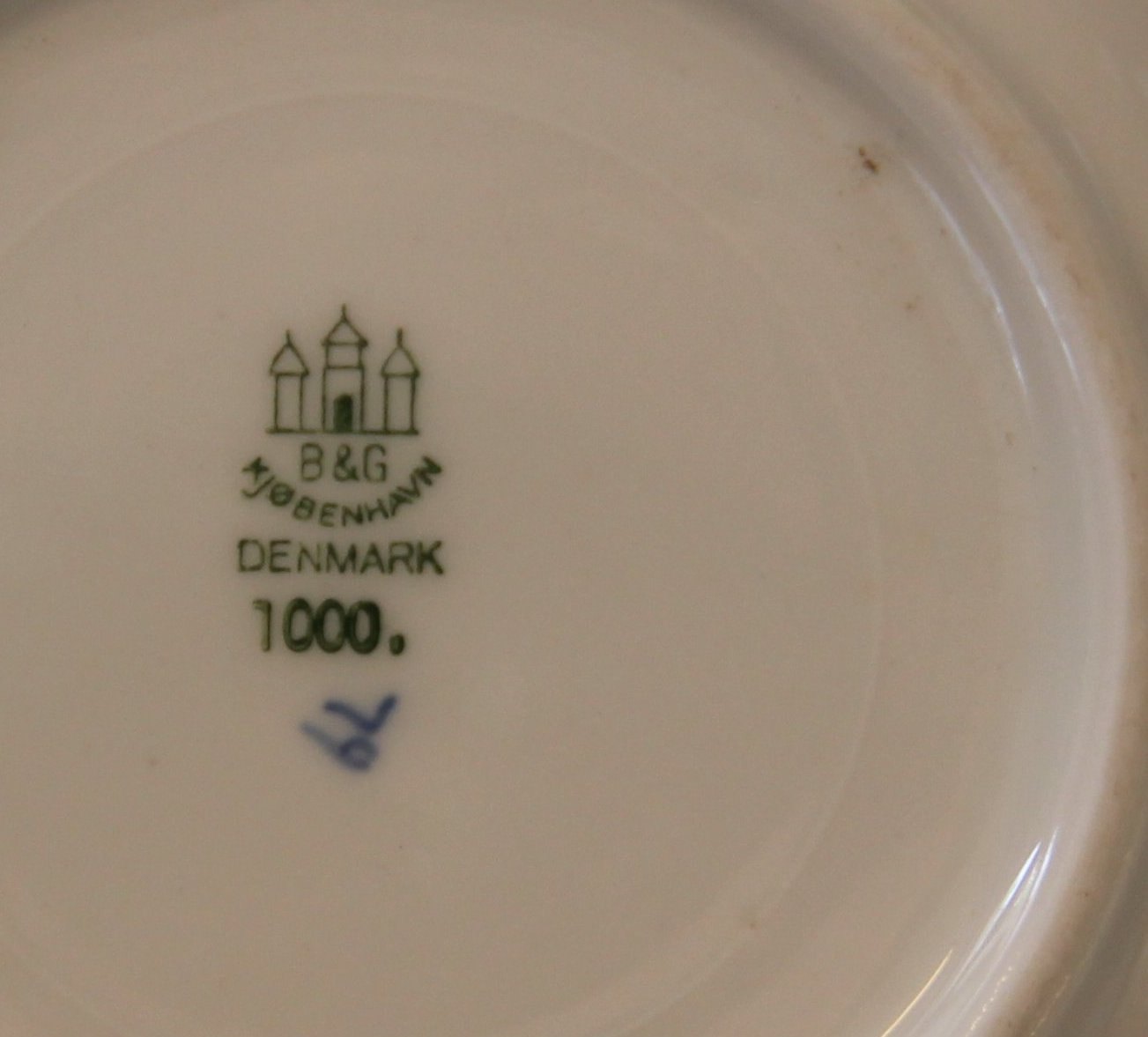 1000 Smør assiet 10 cm Hotel Bing & Grøndahl Jernporcelæn Blåmalet - musselmalet - musling - Kraftigt hotelporcelæn I fin og hel stand.