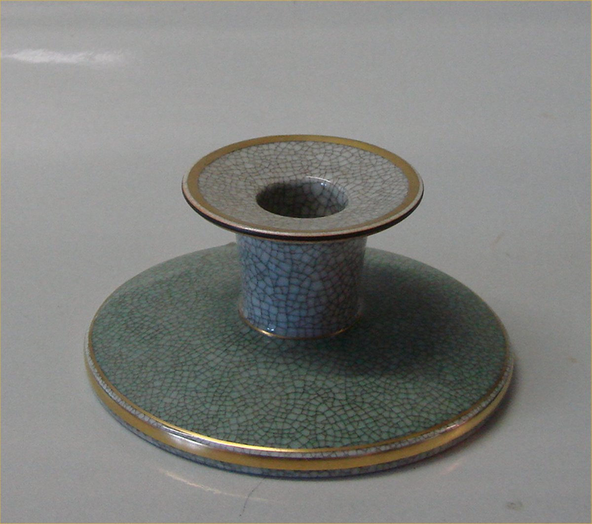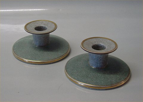 Kongelig Dansk Craquelé, Craquele 457-3335 Par Kgl. lysestager grøn på grå med guld 6 x 12 cm