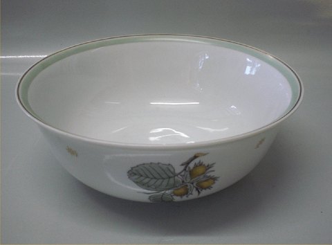 043 Stor kartoffelskål ca 22,5 x 8 cm (313) Hasselnød Bing & Grøndahl B&G : Hvidt porcelæn, hasselnødder i guld, grønne blade, grønt bånd og guldkant, form 601 Helsingør I fin og hel stand. Hazelnut - Haselnuss