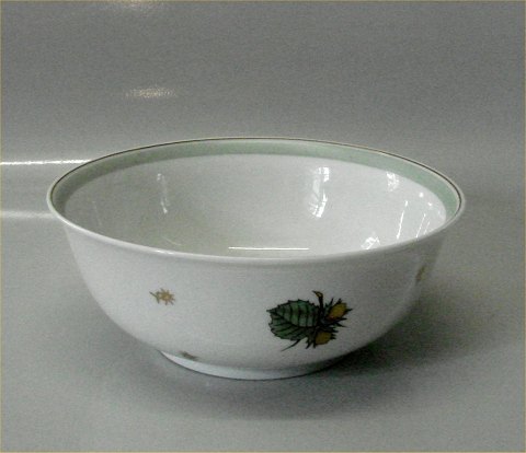 044 a Skål, rund (lille) 19,5 cm Hasselnød Bing & Grøndahl B&G : Hvidt porcelæn, hasselnødder i guld, grønne blade, grønt bånd og guldkant, form 601 Helsingør I fin og hel stand. Hazelnut - Haselnuss