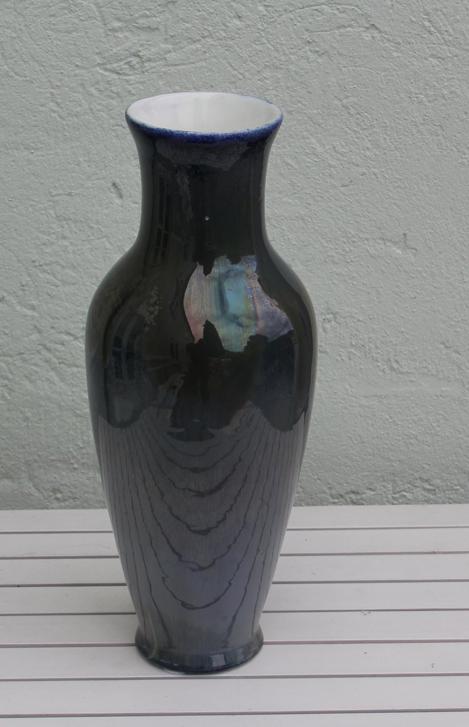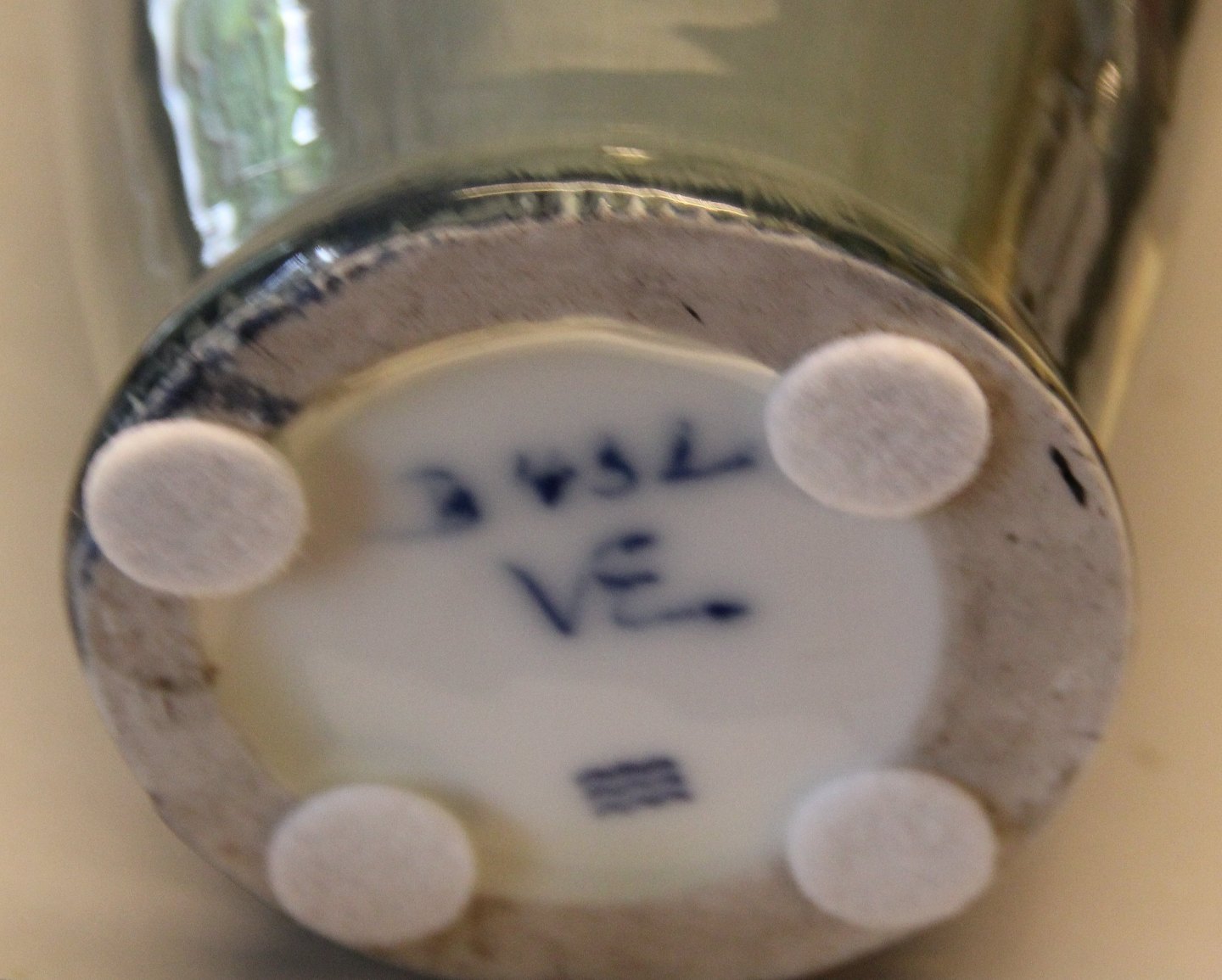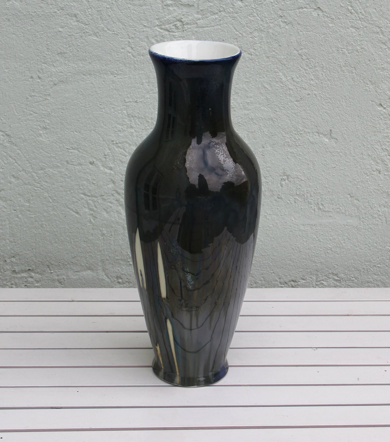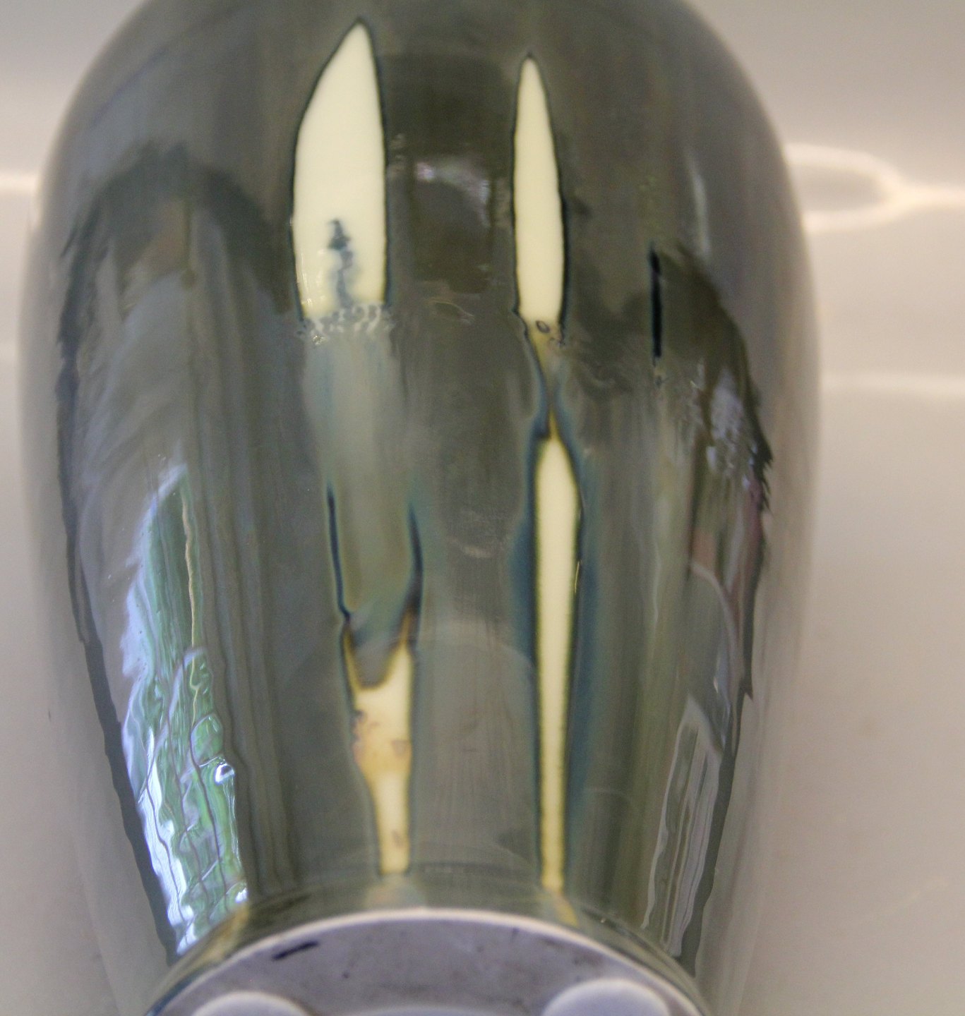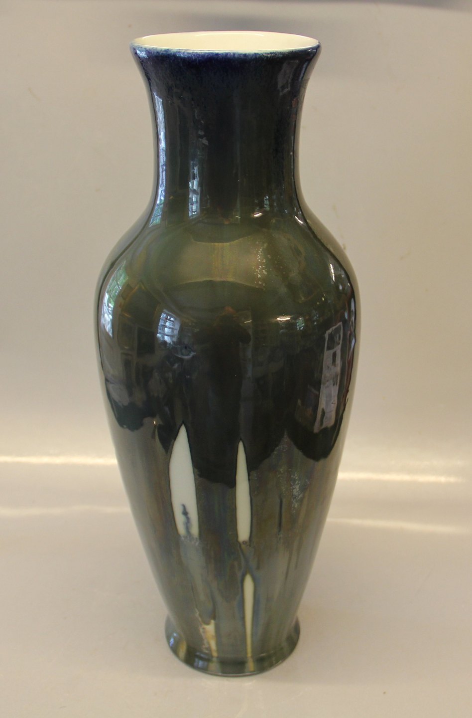 Stor Kongelig Dansk Vase Olivengrøn løbe- og krystalglasur ca 42 cm Valdemar Engelhardt VE